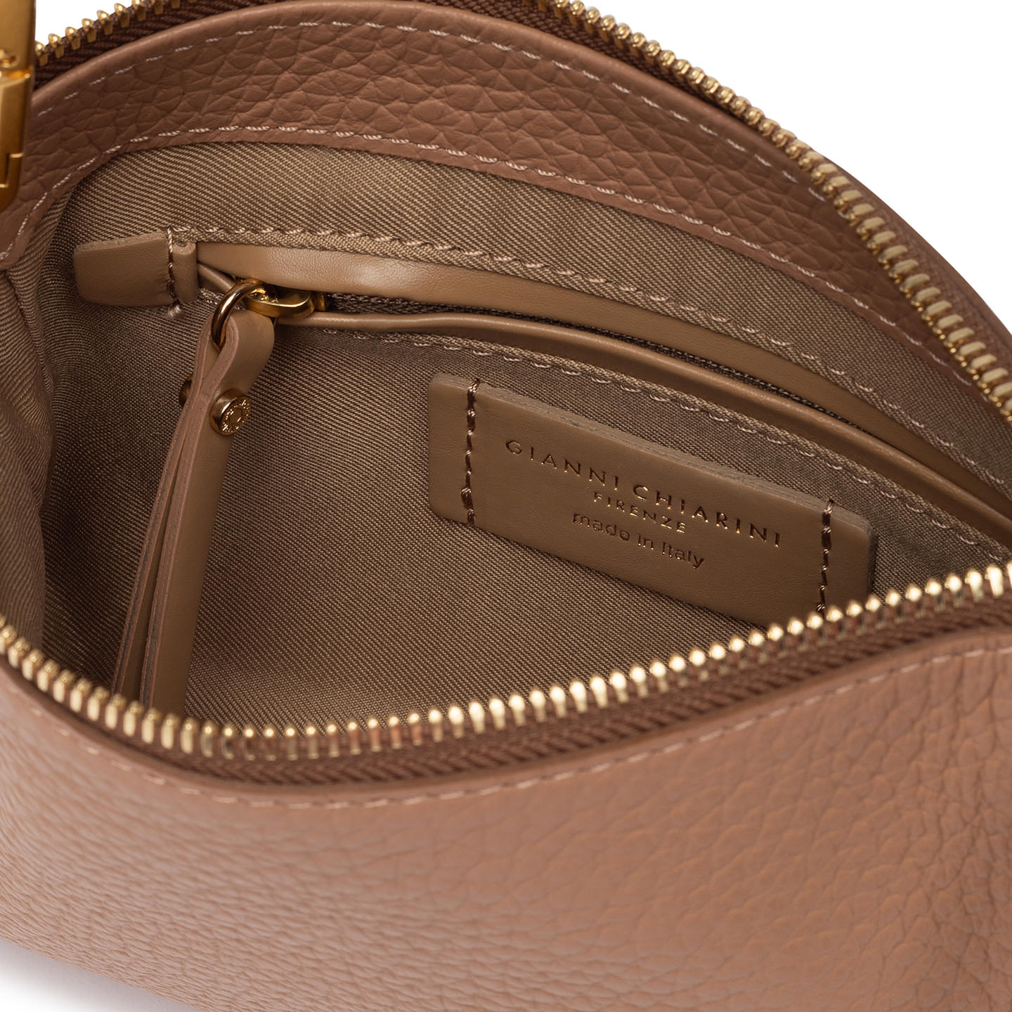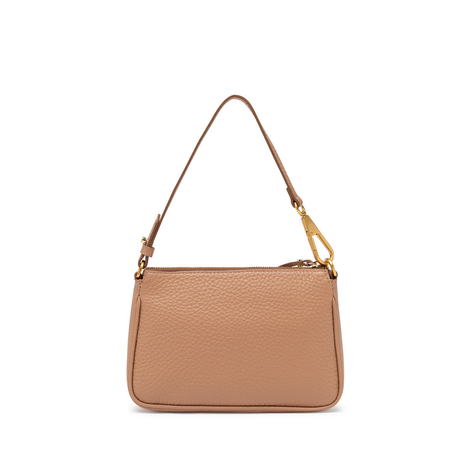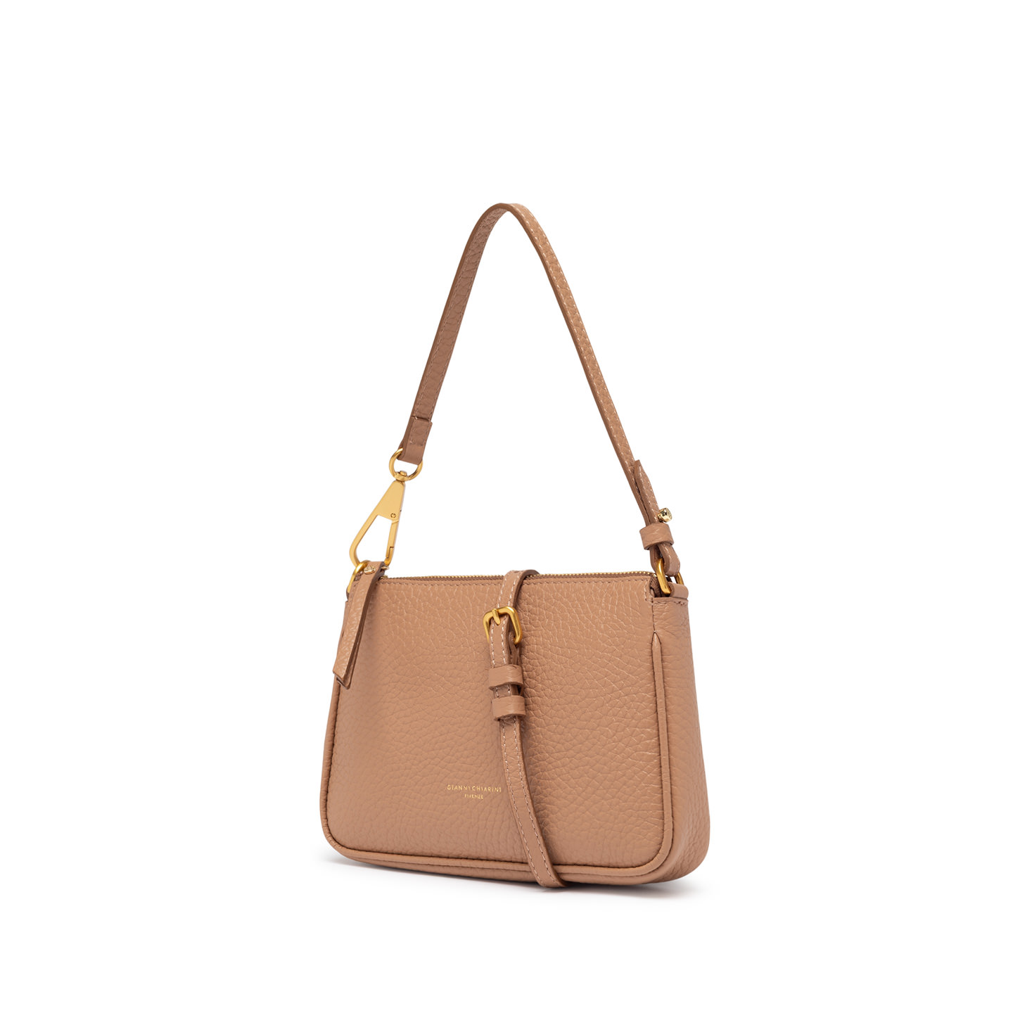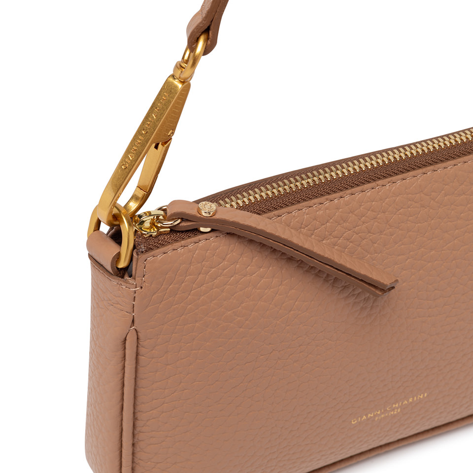 Schlicht und elegant: Die Brooke by Gianni Chiarini Firenze ist aus Leder mit Maxi-Narbung gefertigt und mit einem Reißverschluss und Karabinerhaken am abnehmbaren Henkel verziert. Ergänzt durch einen zusätzlichen Trageriemen ist sie perfekt für den täglichen Gebrauch. Maße: 23x14x4 cm.