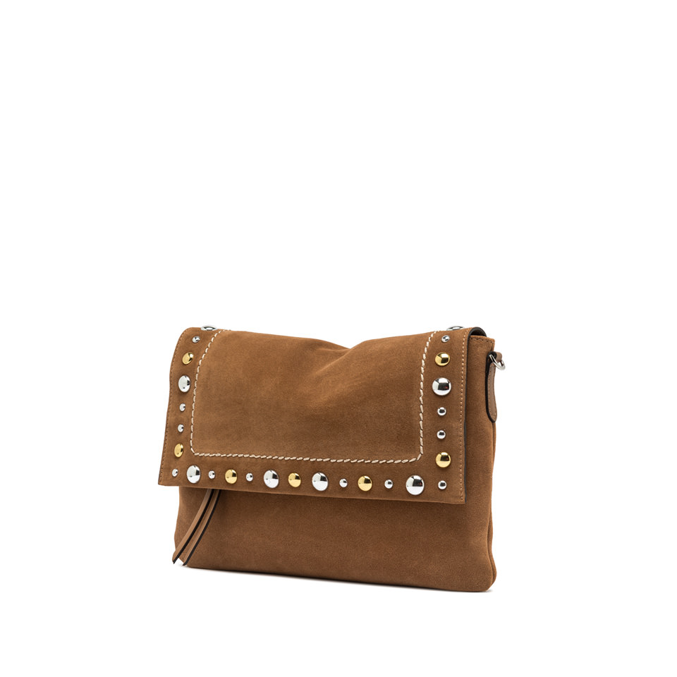 Elisa by Gianni Chiarini Firenze ist die ideale Tasche für jeden Tag, mit einer weichen, länglichen Silhouette, hergestellt aus Wildleder. Sie ist mit Nähten und Nieten verziert, die ihr einen Western-Touch verleihen, hat einen verdeckten Reißverschluss, eine Patte und Magnetknopf und bietet eine eine doppelte Tragemöglichkeit: über der Schulter oder Crossbody dank des Trageriemens aus Leder. Perfekt für alle, die auf der Suche nach Funktionalität und Stil in einem kompakten Design sind. Maße: 31x24x3 cm.