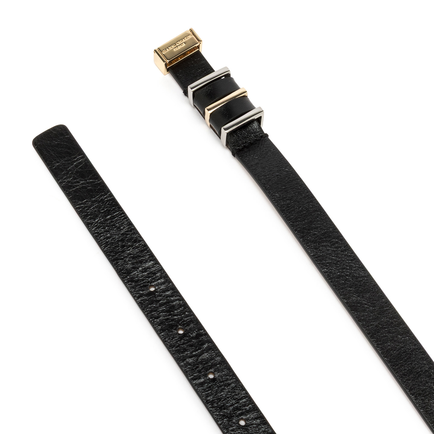 Belt with sophisticated lines, ideal for enhancing both casual and elegant outfits. Crafted from vintage-effect leather, it’s adorned with small metal details and finished with a logoed buckle, adding a touch of style and sophistication.