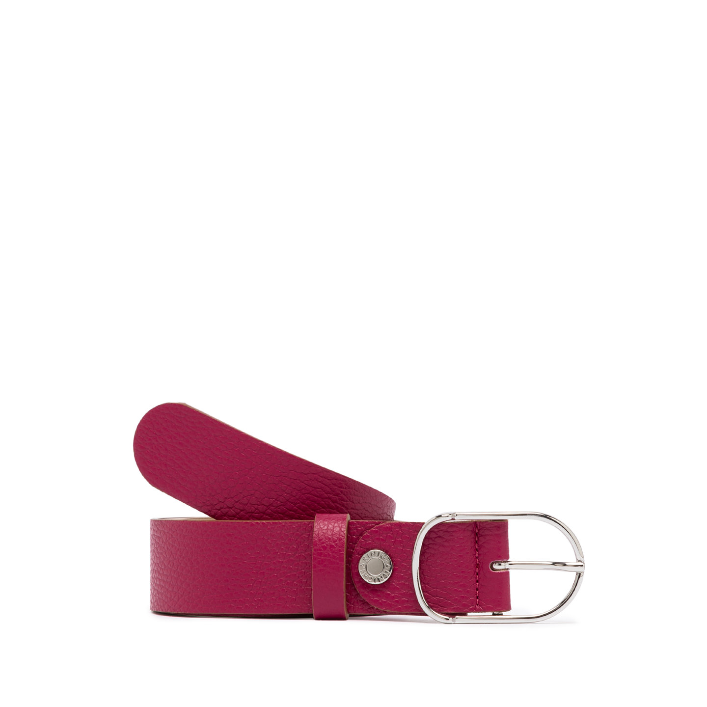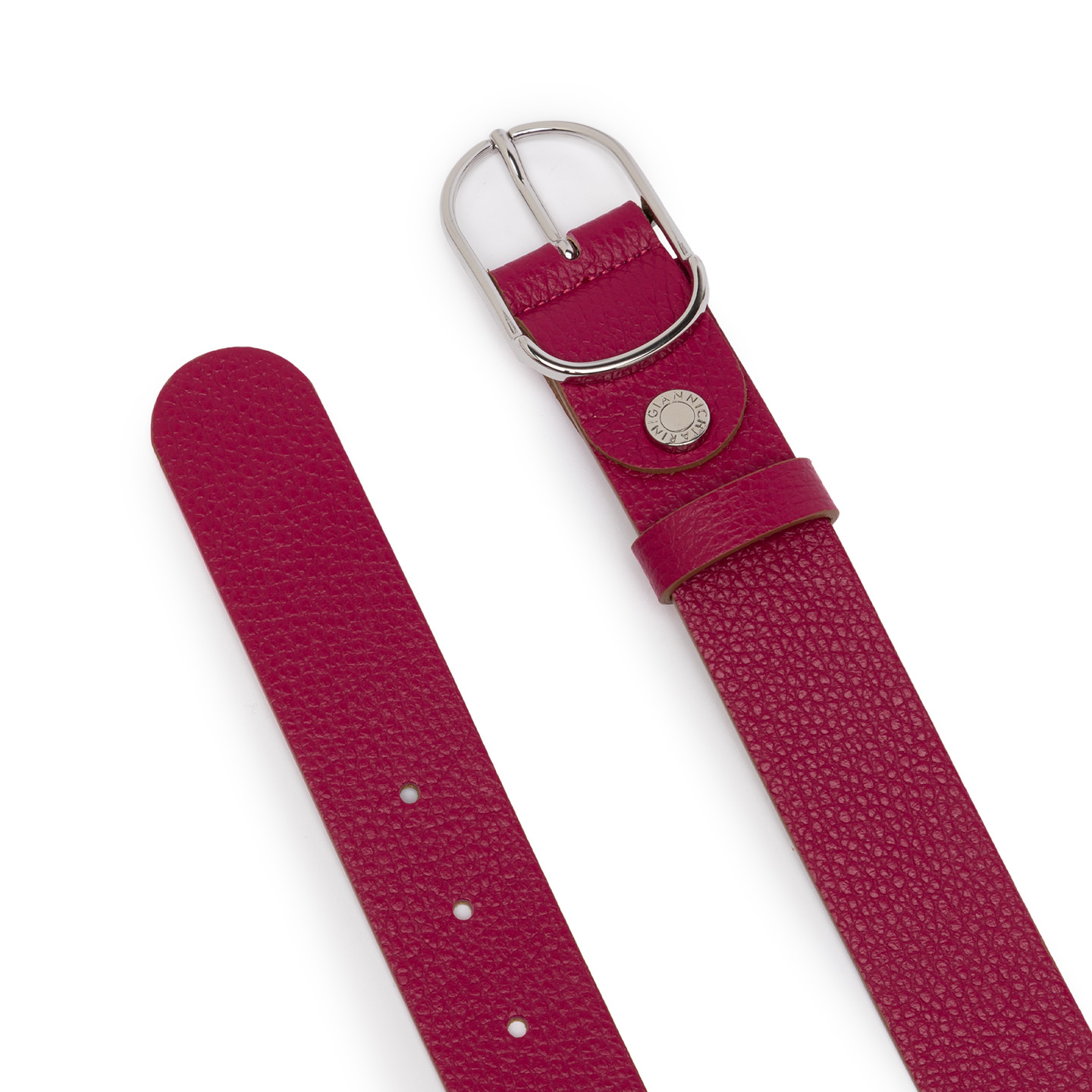 This flat belt has a minimalist design, ideal for enhancing both casual and elegant outfits. Crafted from premium hammered leather, it is enriched with a logoed metal buckle.