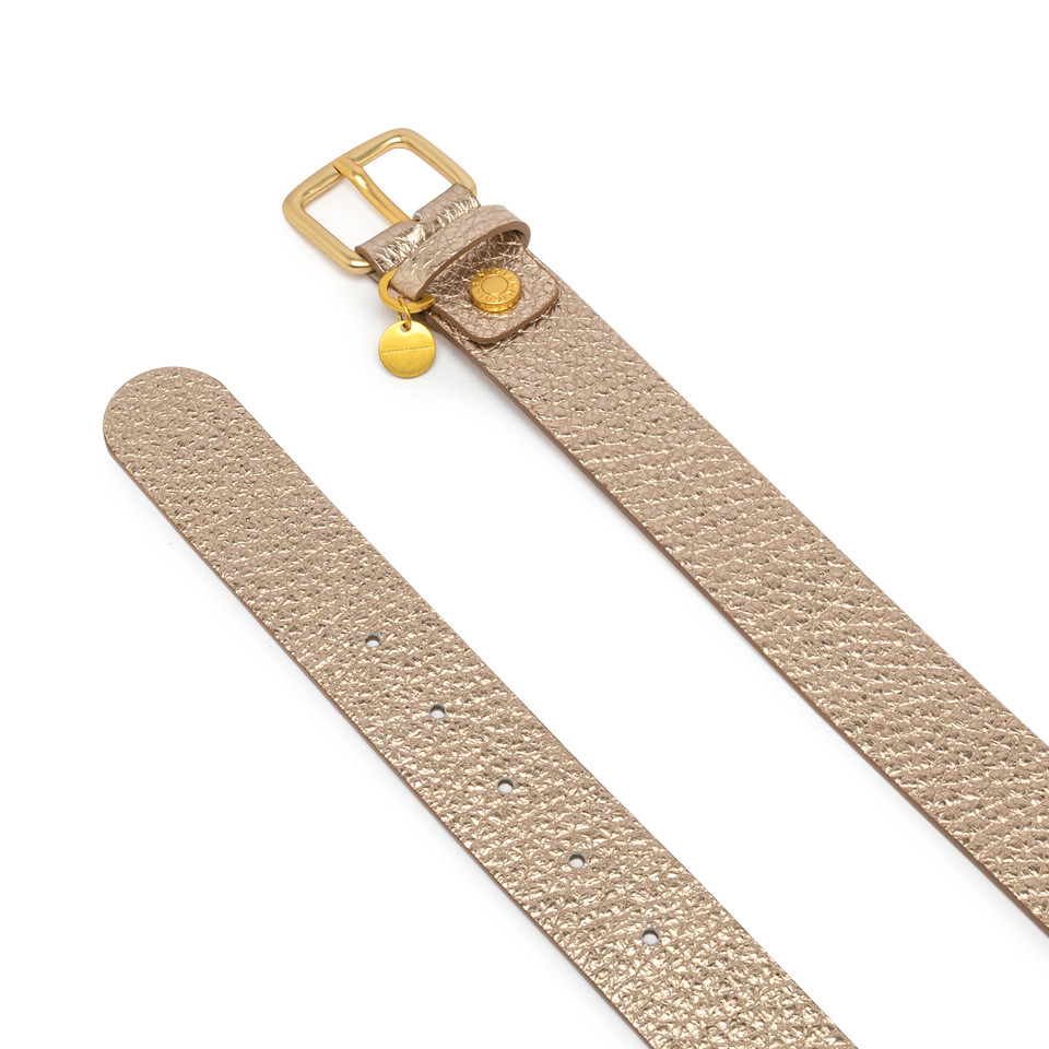 Flat belt with refined, minimalist lines, ideal for completing both casual and elegant outfits. Made from maxi-grain leather, it is enriched with a logoed buckle adorned with a charming logoed pendant.