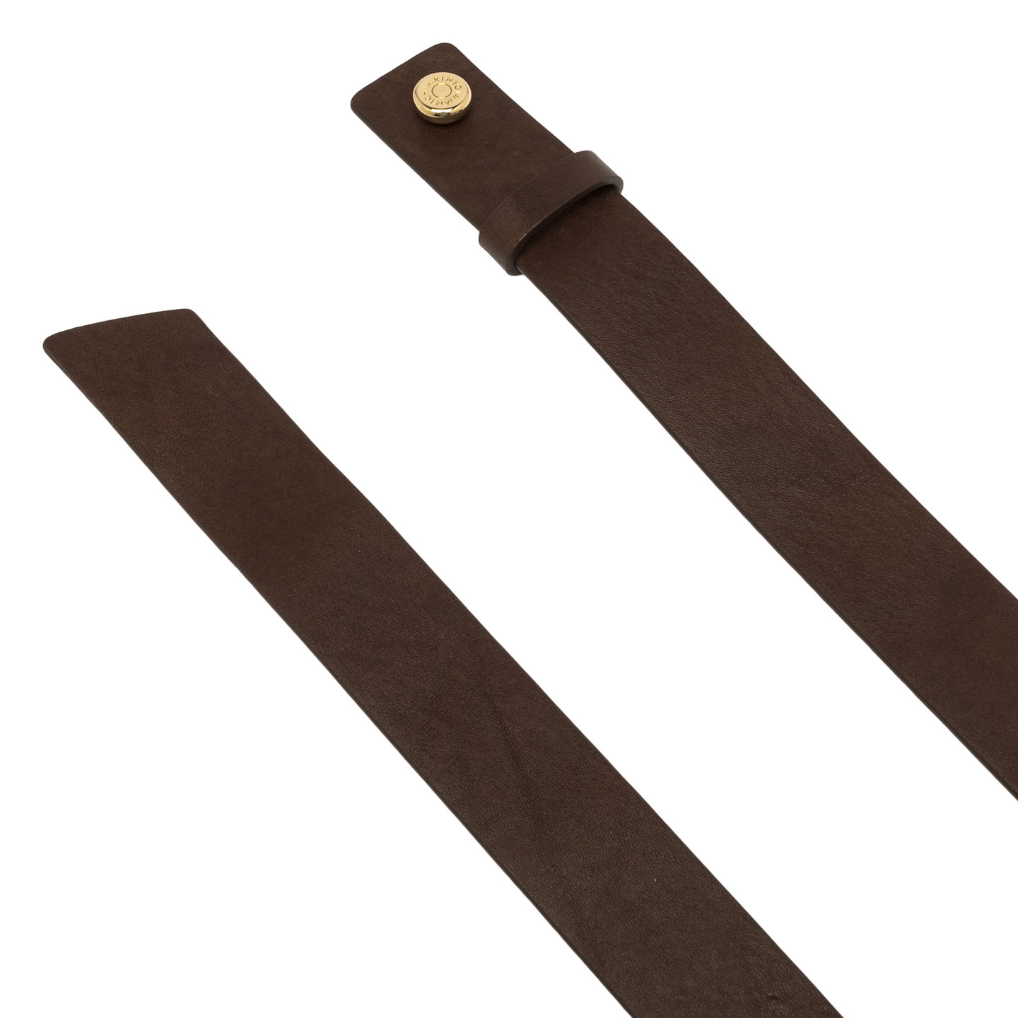 Belt with minimalist lines, designed for completing casual or elegant looks. Made from smooth leather, it stands out with a mix of studs and a metal logo buckle, adding a bold, confident edge.