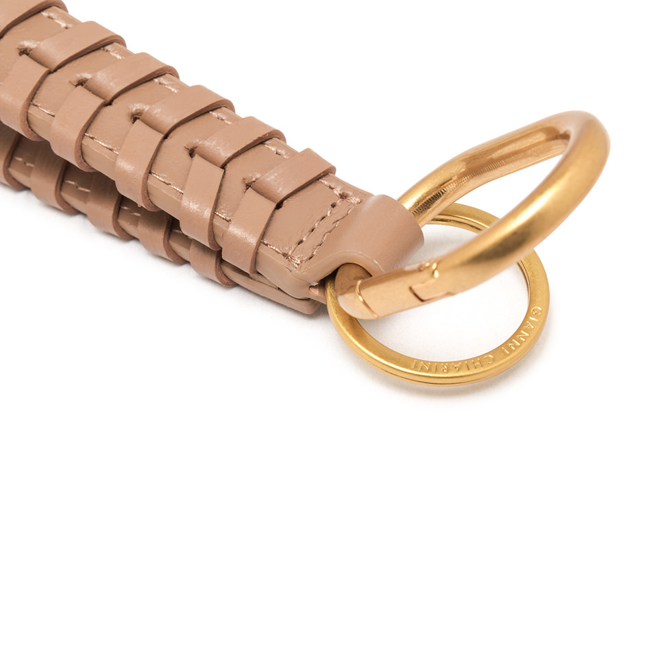 The charm by Gianni Chiarini Firenze, designed to enrich bags and accessories with a unique and distinctive touch. Made of leather, it is characterized by a versatile and original design. The logoed snap hook adds a chic and sophisticated touch to every look. Size: 22x2.5 cm.