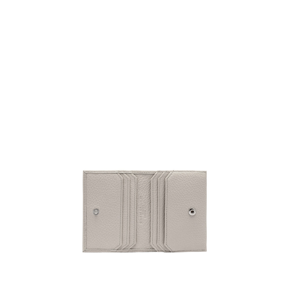 Compact and glam, Gianni Chiarini Firenze wallet is the ideal choice for those seeking a blend of practicality and fashion in their accessories. Made of soft hammered leather, it features a snap button closure and multiple credit card holder compartments. Size: 10.5x8x1.5 cm.