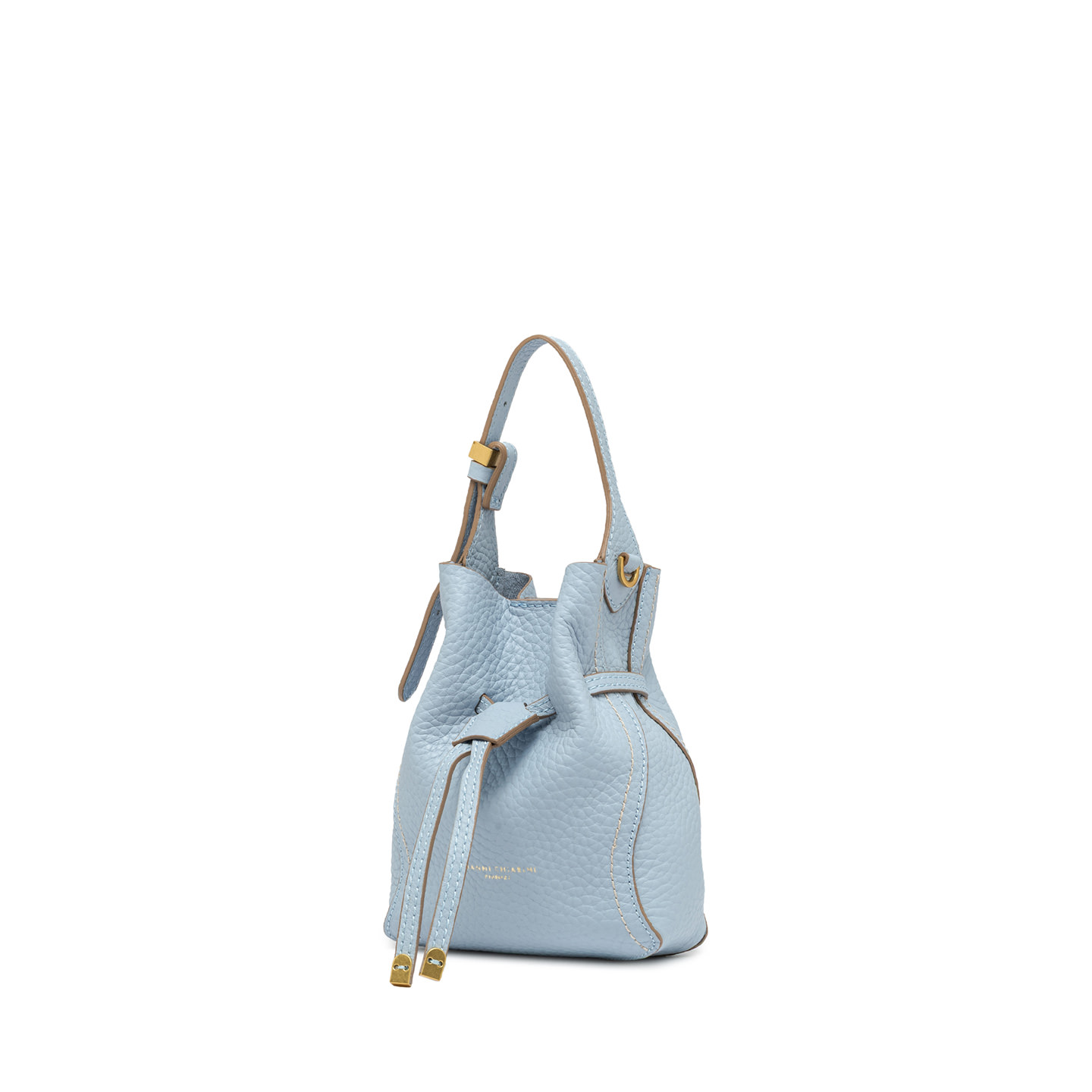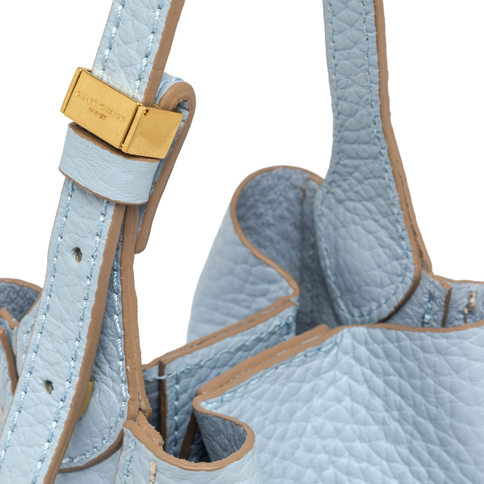 Sienna is the new line by Gianni Chiarini Firenze, defined by its soft yet feminine shape, perfect for a casual-chic look. Crafted from double leather, it features contrast topstitching that highlights its silhouette. Equipped with a single compartment and magnetic clasp closure, it's enhanced with iconic metallic details like the double-loop logoed charm and metallic tips. Wear it by hand or on the shoulder with the included adjustable strap. Size: 15x20x8 cm.