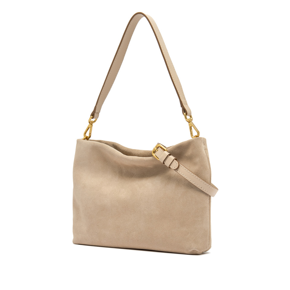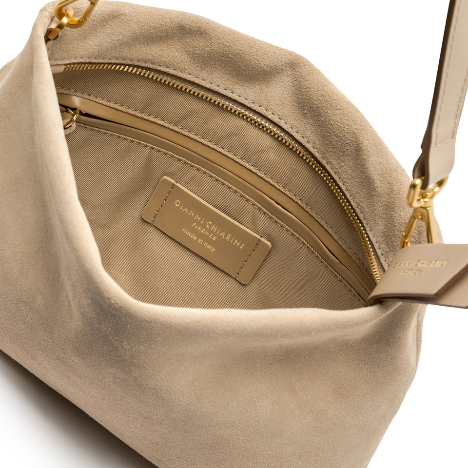 A Gianni Chiarini Firenze bestseller, the Brenda clutch is crafted from suede and features a removable leather wrist strap. Inside, it includes a practical flat pocket. With an adjustable, detachable leather shoulder strap, it can also be worn cross-body, effortlessly combining refinement and functionality for every occasion. Size: 32x22x2 cm.
