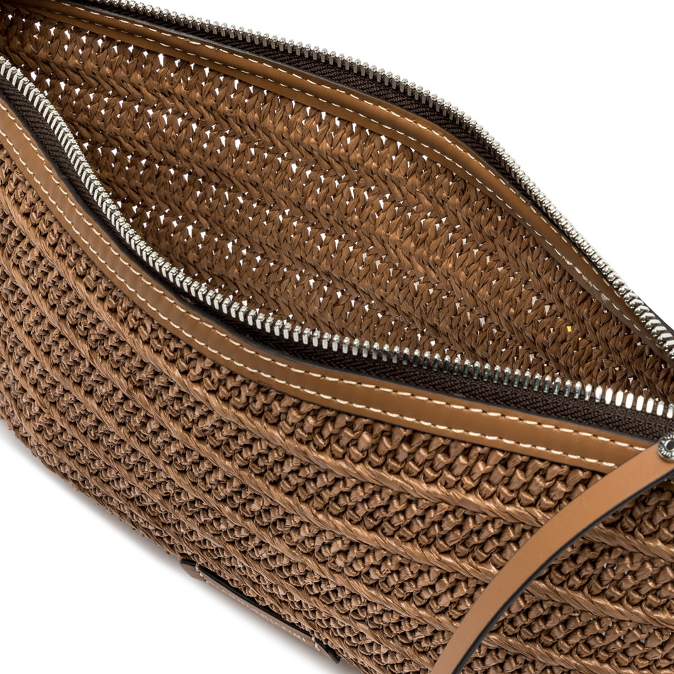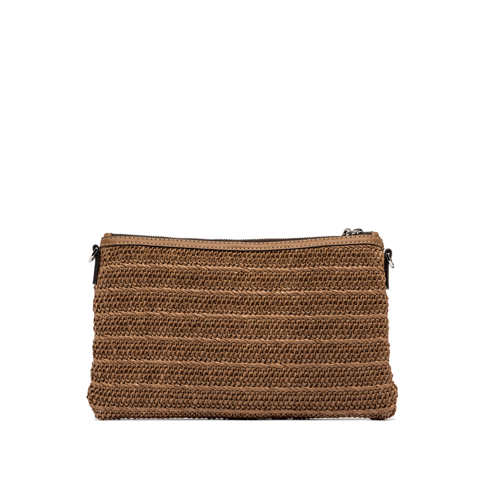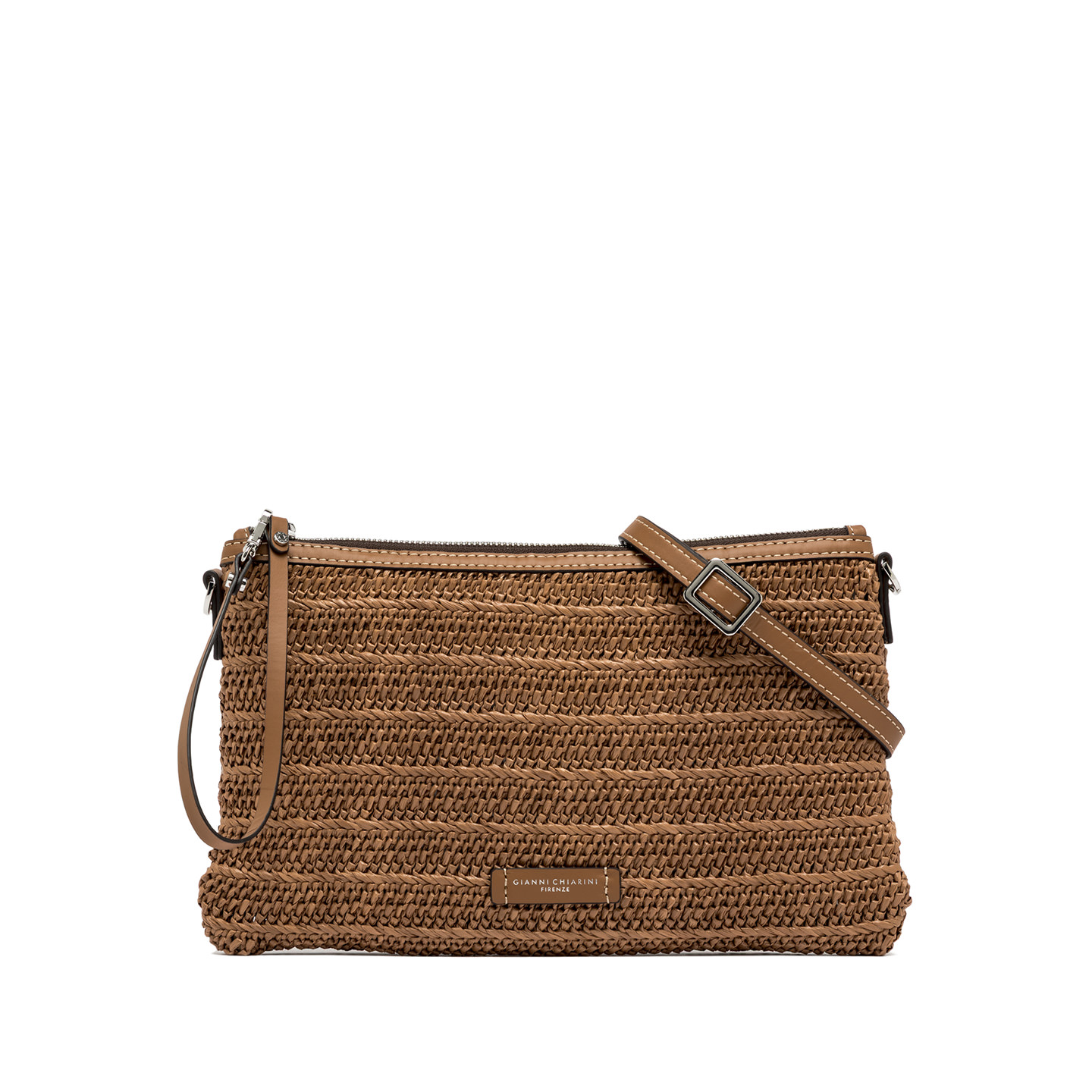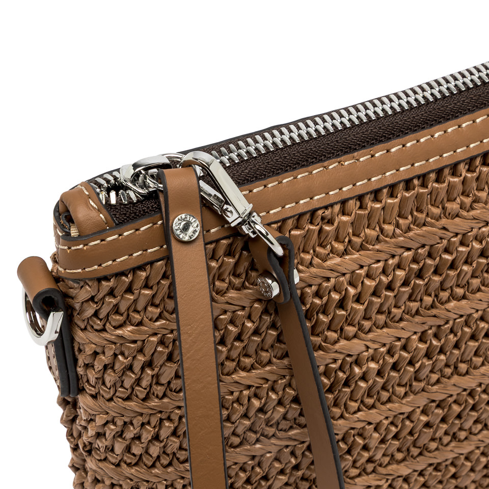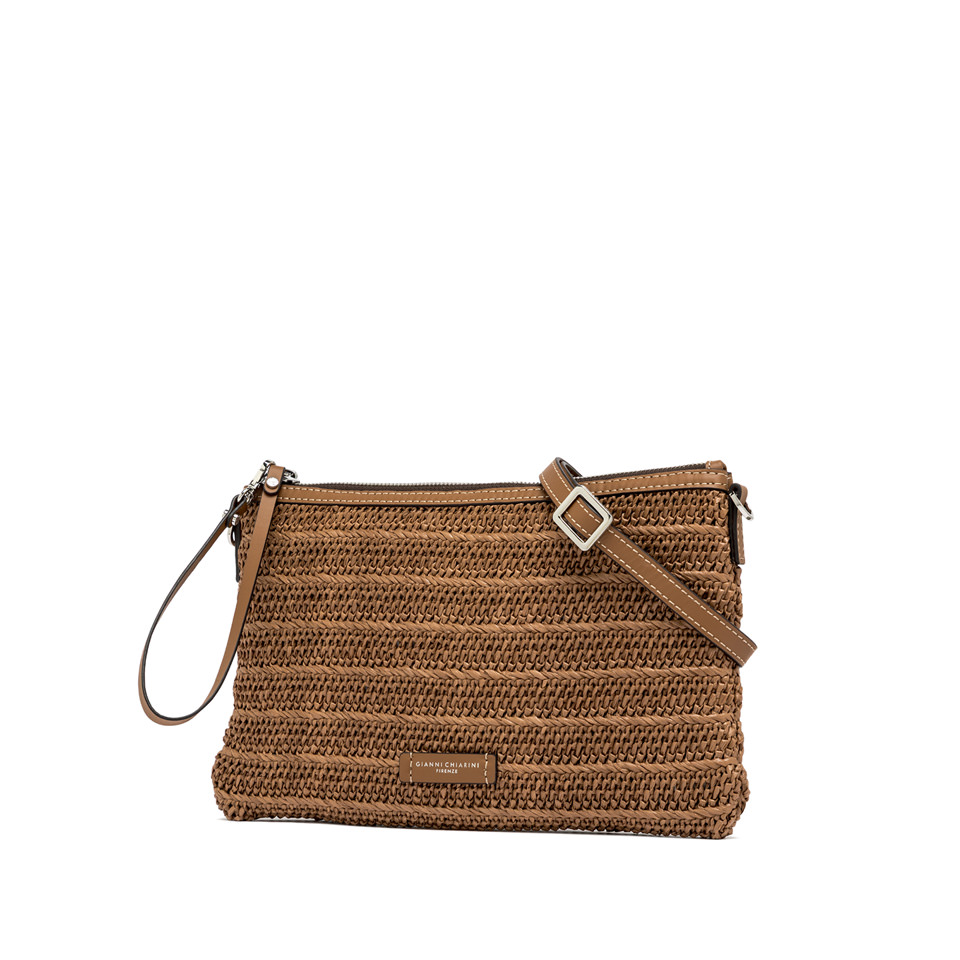 The new Marcella clutch by Gianni Chiarini Firenze is crafted from straw-effect raffia for a light and natural look. The leather trim enhances its rustic-chic style, while the zip closure and leather zip-puller make it easy to wear on the wrist. Equipped with a slim matching shoulder strap, it's the perfect accessory to carry from day to night. Size: 29x19x1.5 cm.