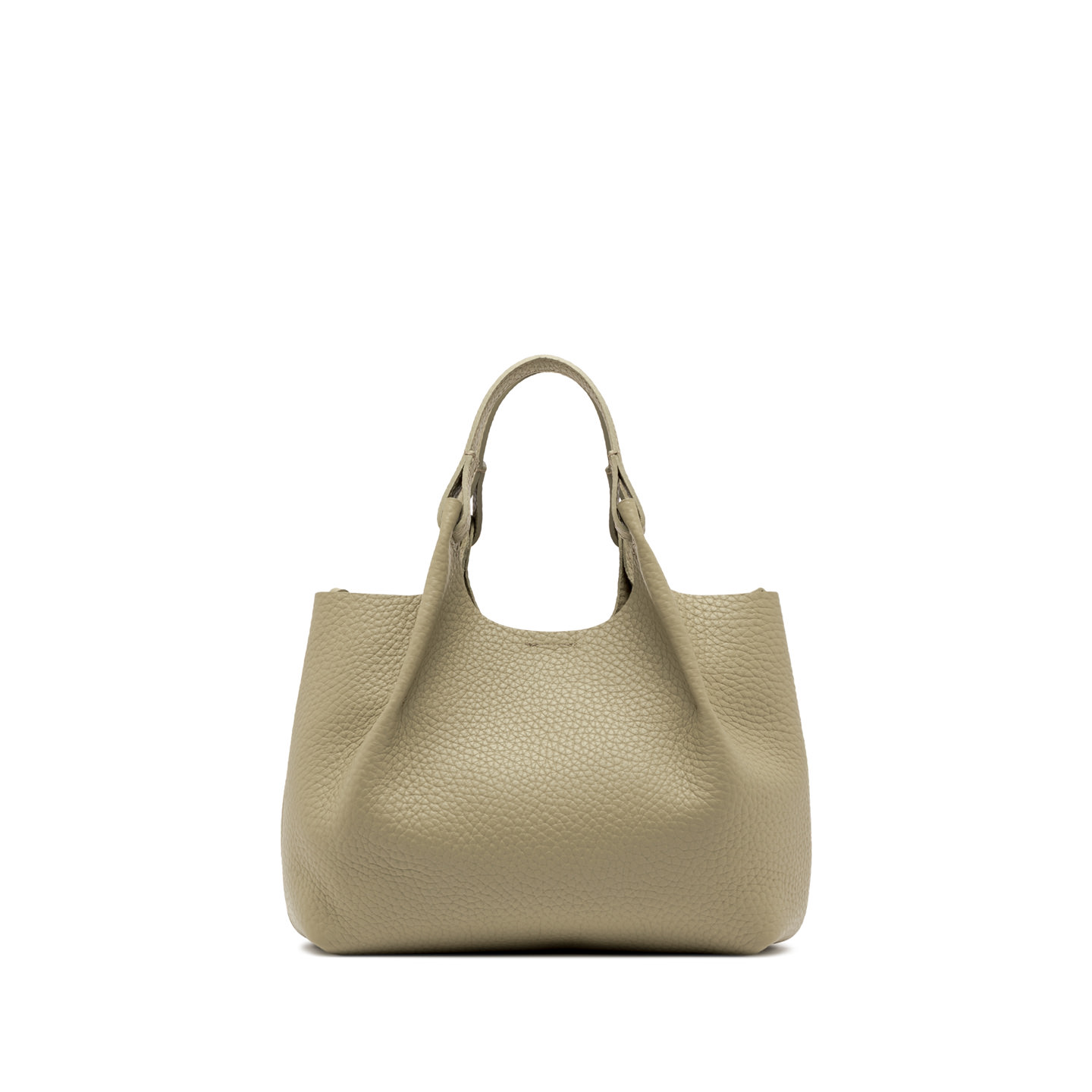 The iconic Dua bag, crafted from maxi grain leather, stands out for its unique texture. It features an unlined single compartment, top profiles in leather and color matching double handles. Practical and essential, it is perfect to stylishly enhance any look. Equipped with a practical clutch with zip closure. Size: 24x27x12 cm.
