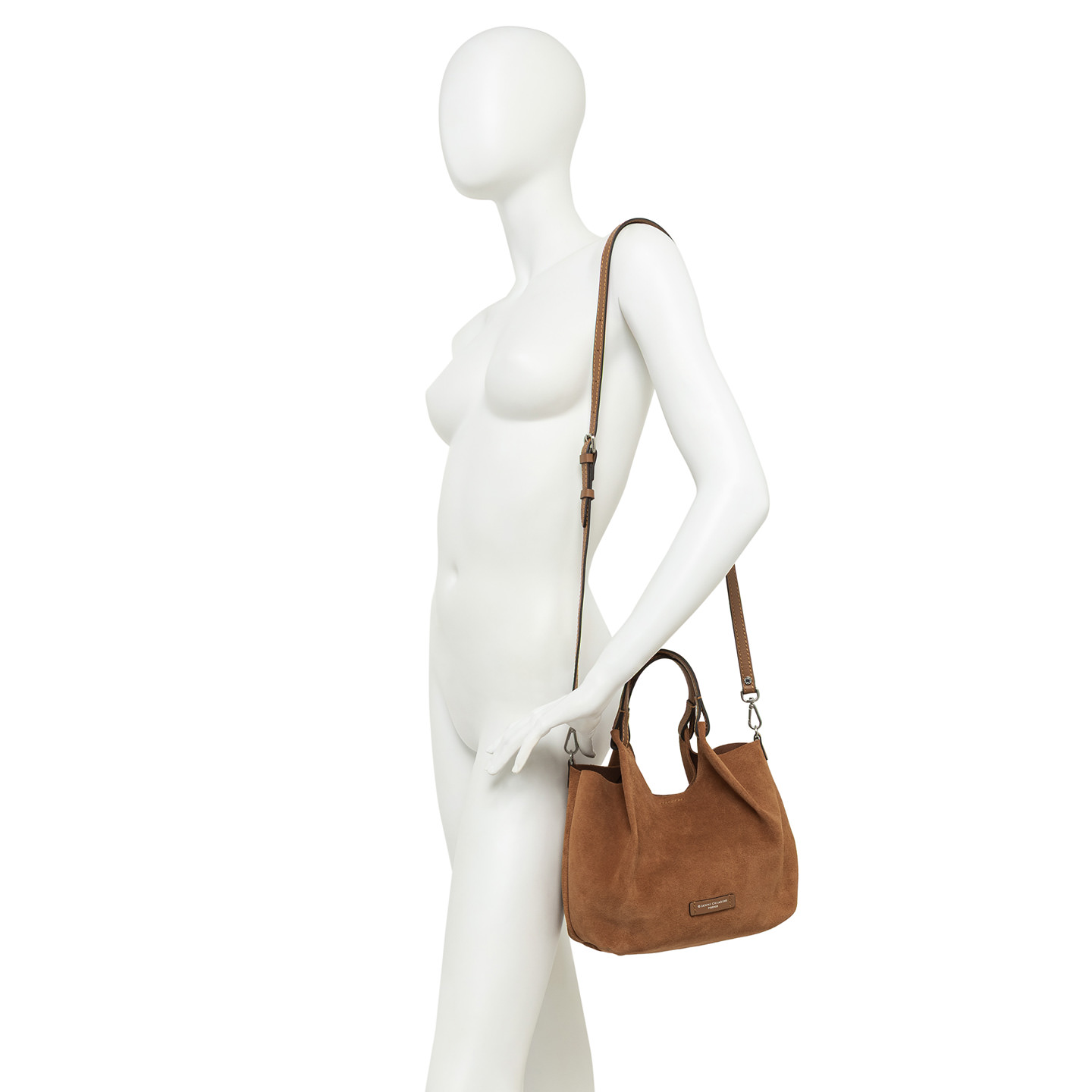 The iconic Dua bag, crafted from suede, stands out for its unique texture. It features an unlined single compartment, top profiles in leather and color matching double handles. Practical and essential, it is perfect to stylishly enhance any look. It can be carried as a handbag at the shoulder. Size: 24x27x12 cm.