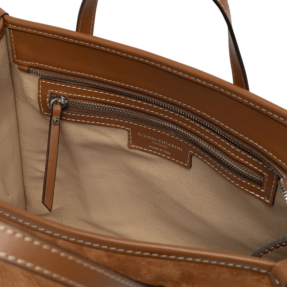 Miss Marcella 32 by Gianni Chiarini Firenze is a bag with a casual yet refined character, perfect for completing country-chic style looks. Made of soft suede with contrasting smooth leather finishes, it features leather handles and an adjustable, removable strap for cross-body carrying. A versatile accessory, ideal for everyday life. Size: 33x25x13 cm.