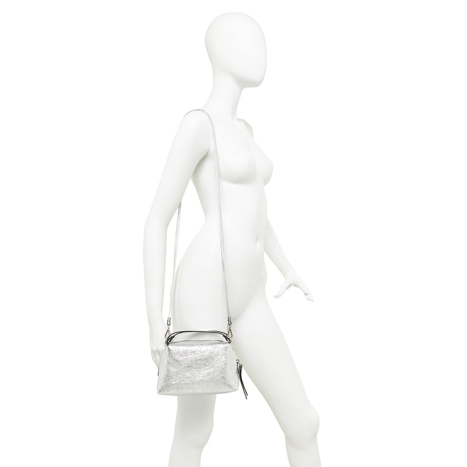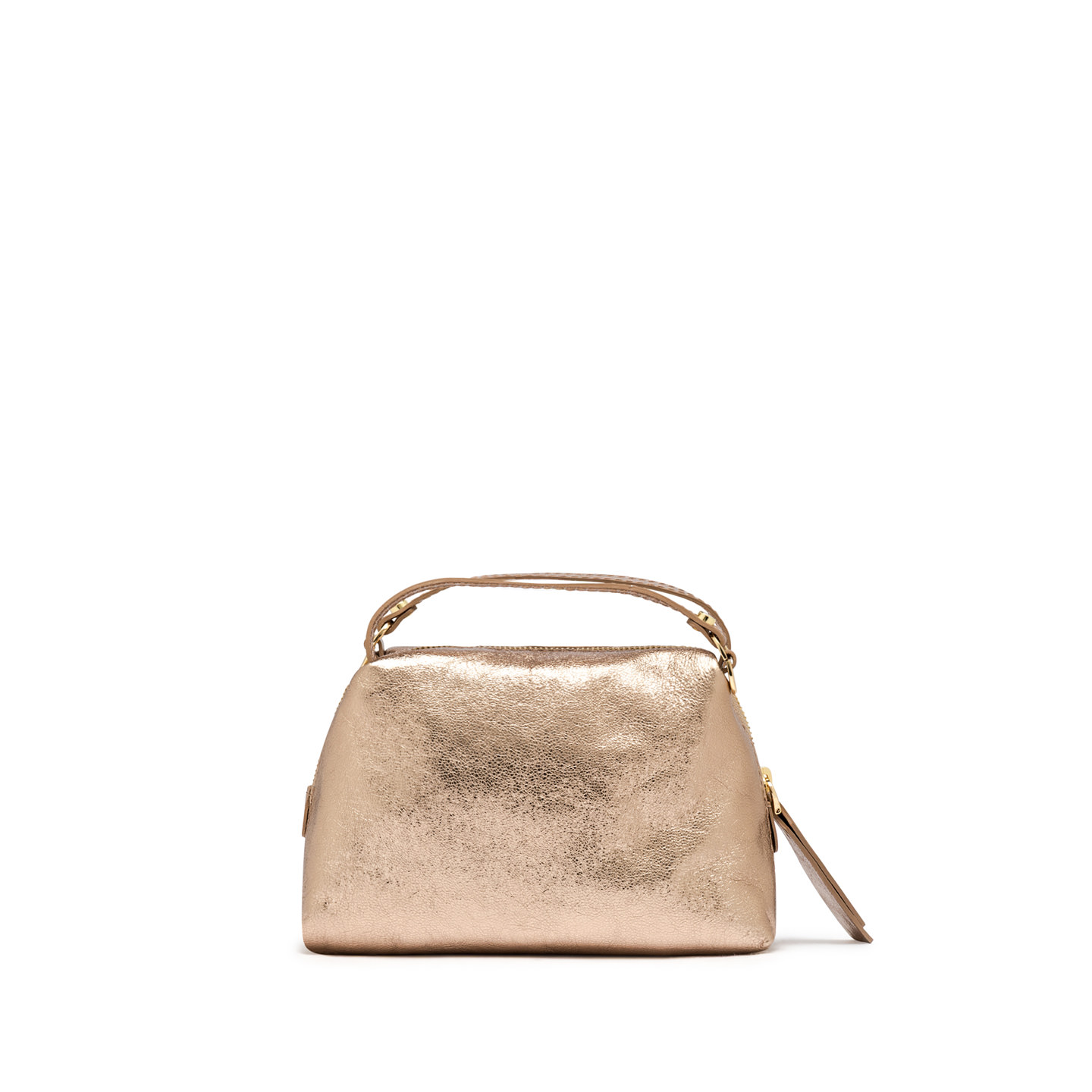 Compact, lightweight, and roomy, the Alifa bag is ideal for those seeking a touch of sophisticated style without compromising on practicality. Crafted from suede with a metallic finish, it boasts a refined and versatile design that elevates any look. Equipped with dual handles and a slim matching shoulder strap, it can be carried by hand, on the shoulder, or cross-body, adapting to any occasion. Size: 20x12x8 cm.
