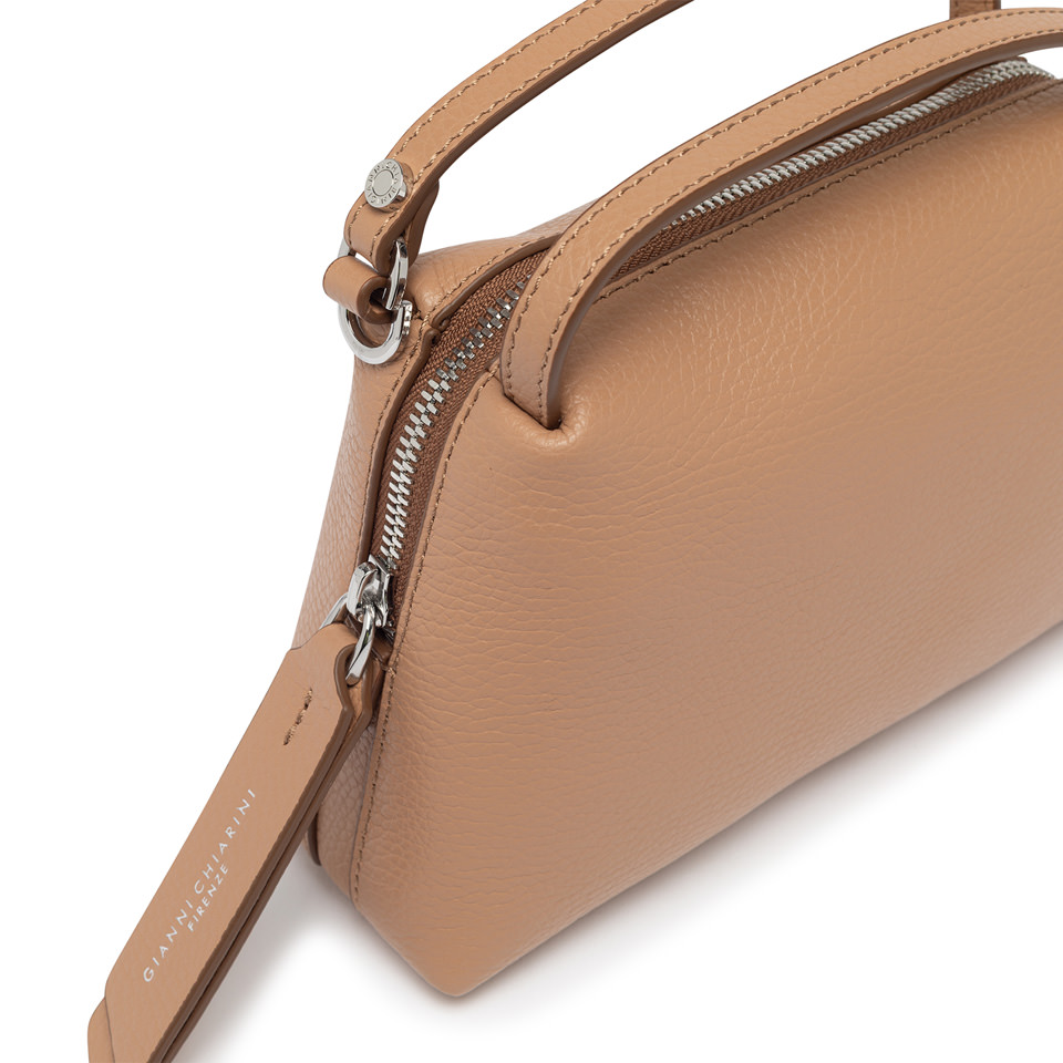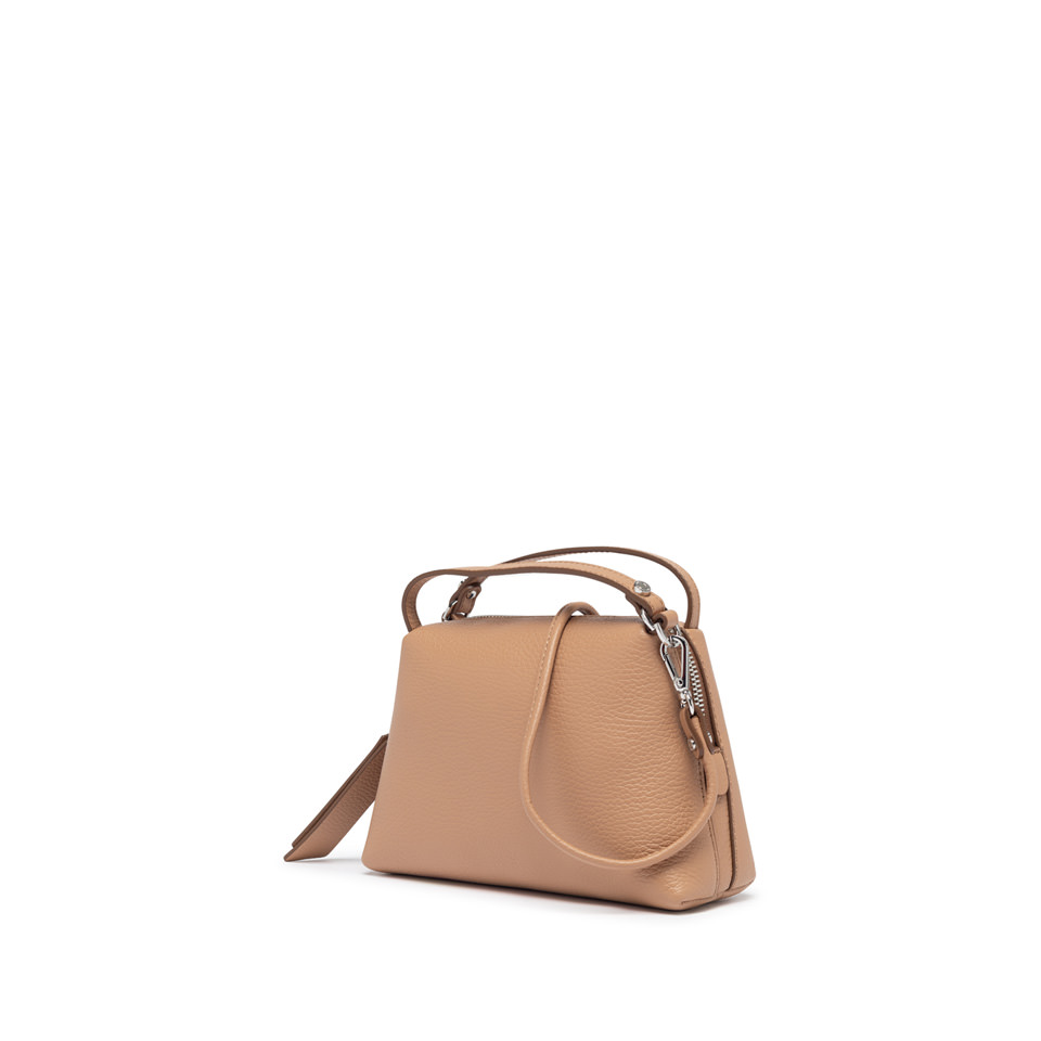 Compact, lightweight, and roomy, the Alifa bag is ideal for those seeking a touch of sophisticated style without compromising on practicality. Made of hammered leather, it boasts an elegant and versatile design. Equipped with dual handles and a slim matching shoulder strap, it can be carried by hand, on the shoulder, or cross-body, adapting to any occasion. Size: 20x12x8 cm.