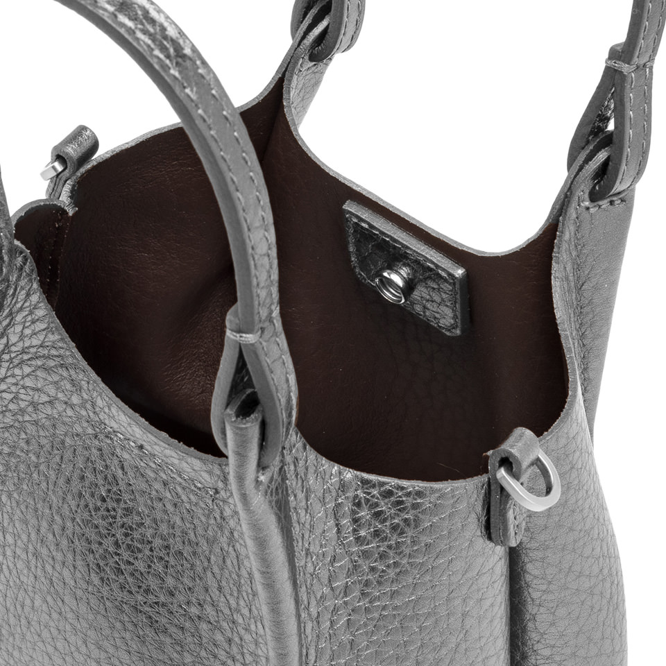 The brand icon DUA stands out for its simple yet contemporary design. Made of double maxi-grain leather, this mini-bag features an unlined single compartment and is extremely practical. It can be worn as a handbag or cross-body thanks to the strap it comes with. Size: 19x20x8 cm.