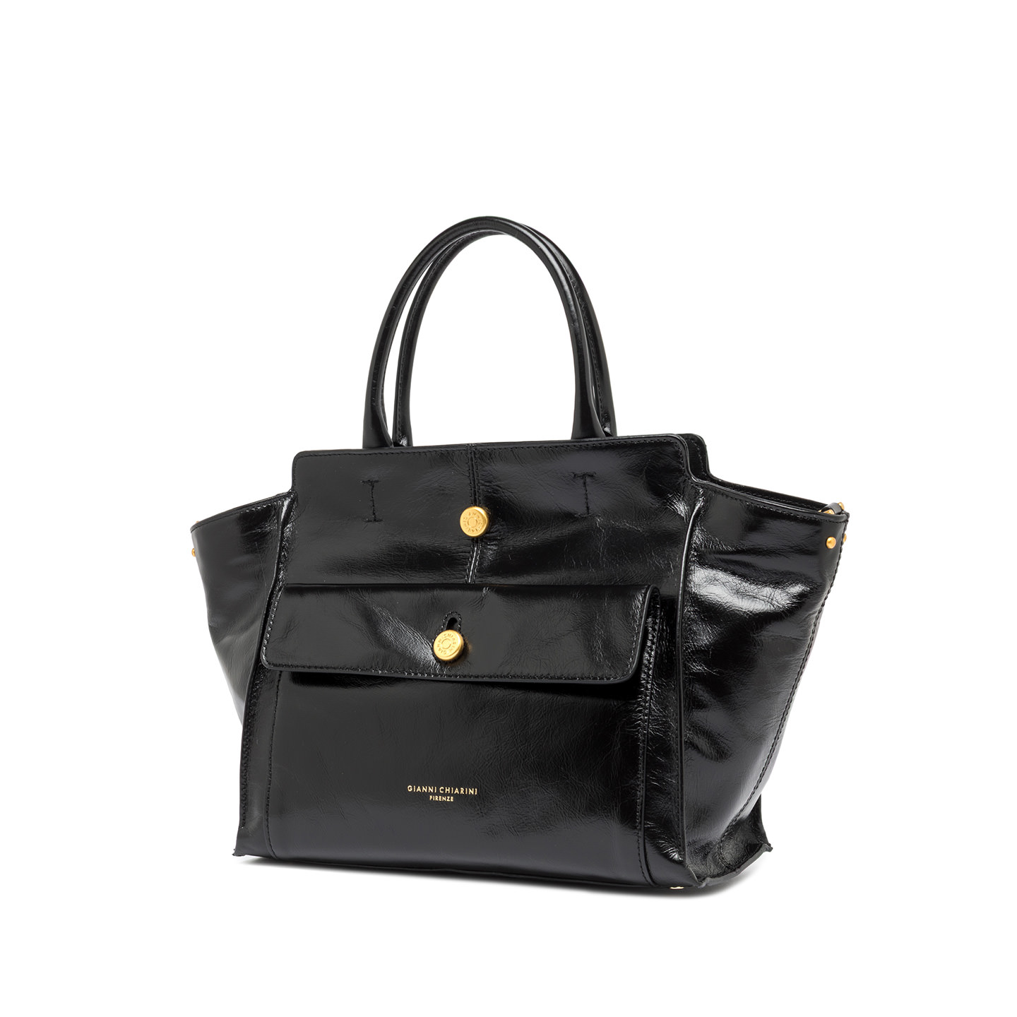 Cher by Gianni Chiarini Firenze is modern and versatile, perfect for bold, on-the-go women thanks to its roomy design and functionality. Crafted from waxed leather and enhanced with metallic details for a bold touch. It features two leather handles for hand carry and an adjustable, removable strap for cross-body wear. Size: 29x24x13 cm.