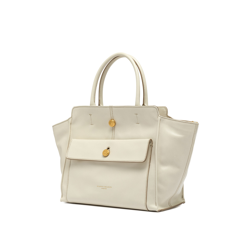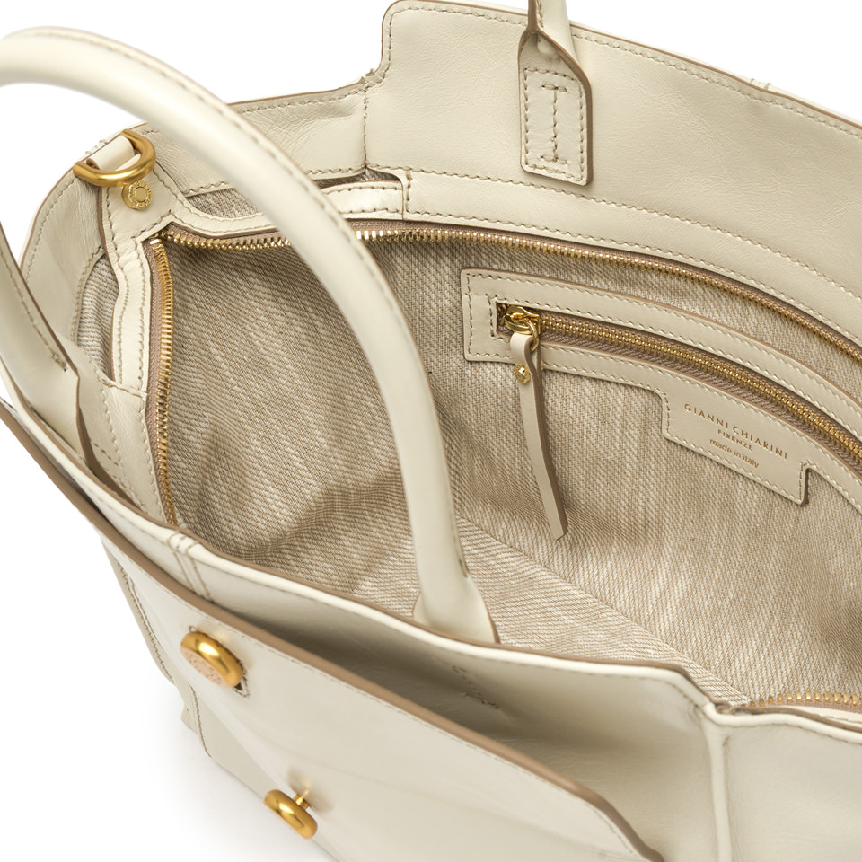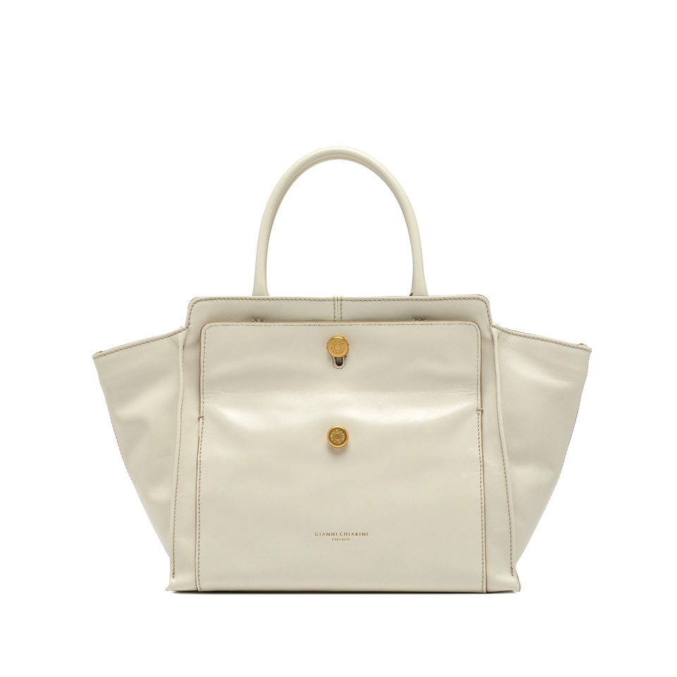 Cher by Gianni Chiarini Firenze is modern and versatile, perfect for bold, on-the-go women thanks to its roomy design and functionality. Crafted from waxed leather and enhanced with metallic details for a bold touch. It features two leather handles for hand carry and an adjustable, removable strap for cross-body wear. Size: 29x24x13 cm.