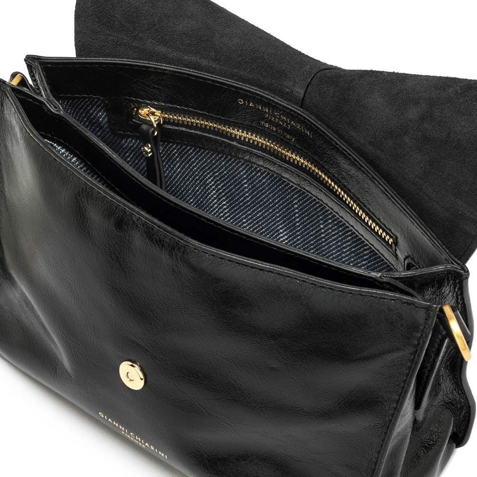 Diva by Gianni Chiarini Firenze is a square-shaped bag that blends tradition with modern design. Crafted from crinkled-effect waxed leather, it closes with a flap and magnetic clasp. With a practical shoulder pad and leather strap, it can be worn over the shoulder or cross-body. Hand-stitched details and a sculpted flap edge make this an everyday essential with distinctive charm. Size: 25x17x11 cm.