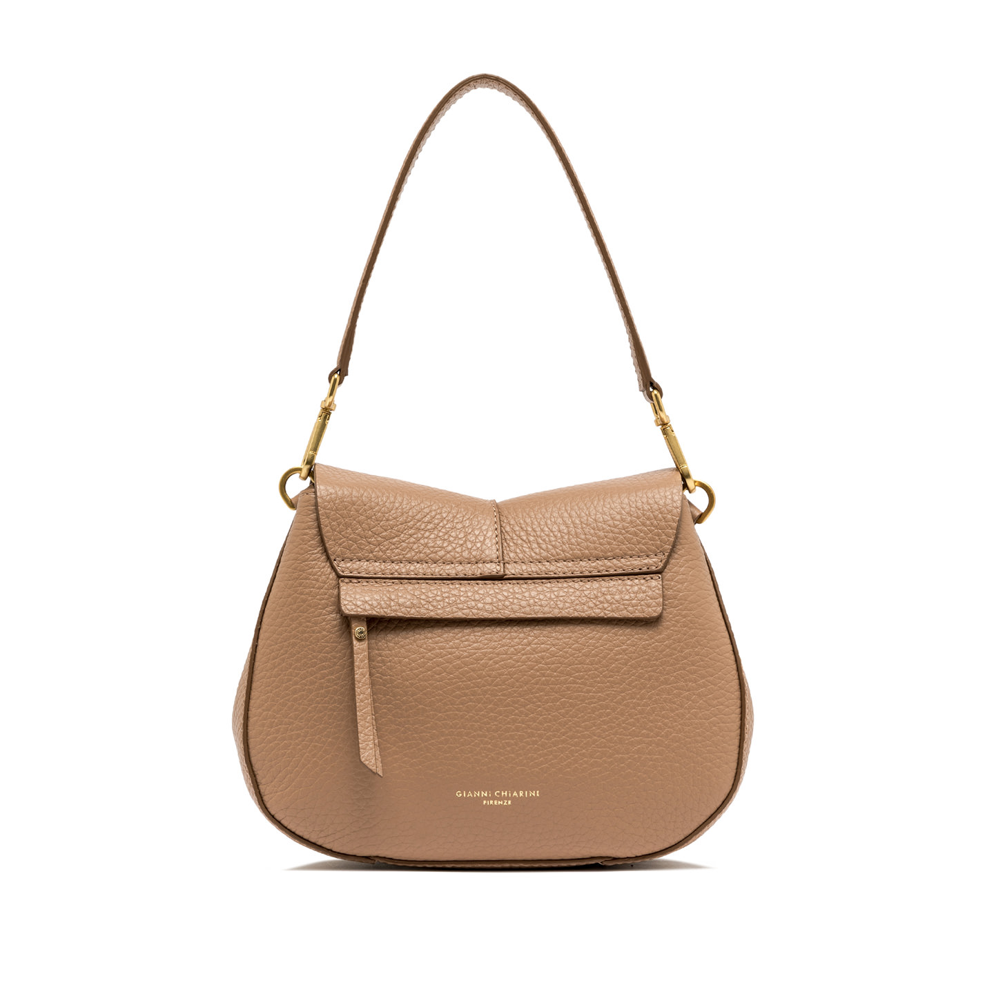 The iconic Helena Round Gianni Chiarini Firenze bag in maxi grain leather boasts a structured design with a contemporary, glam appeal. Thanks to the shoulder straps it is equipped with, it can be worn in two different ways. Practical and organized, it features a double interior compartment and a concealed pocket, also on the back of the bag. Size: 26x21x9 cm.