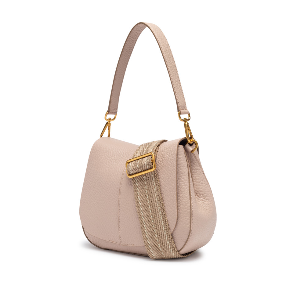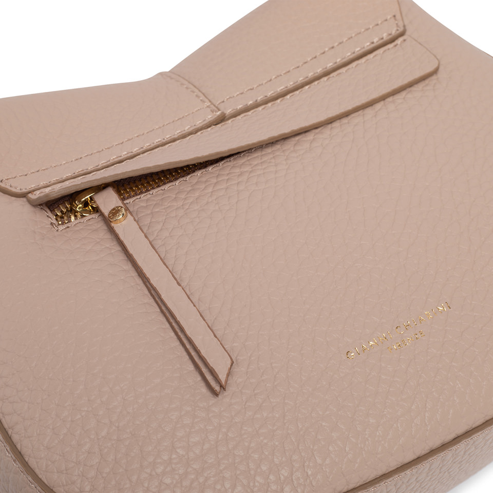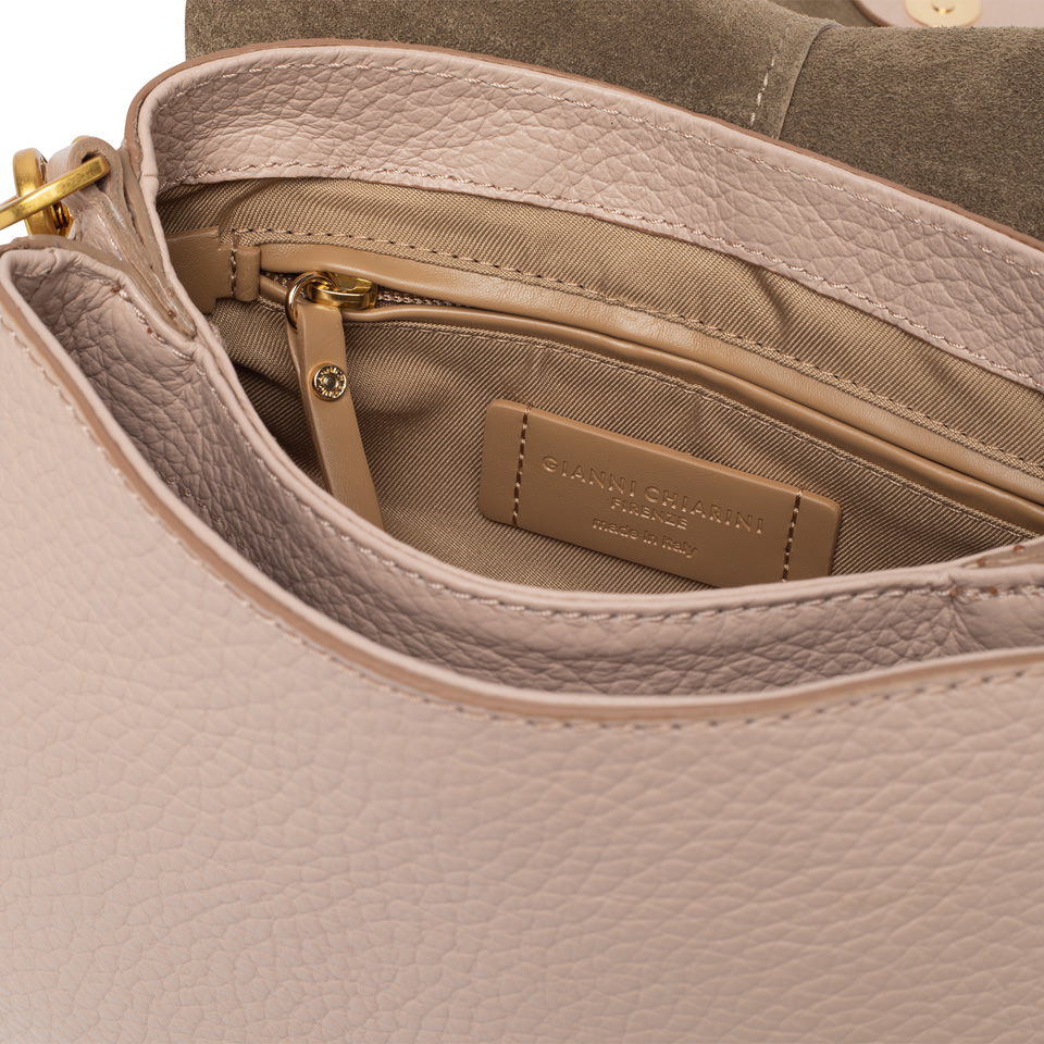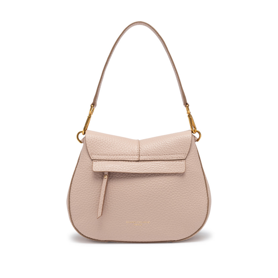 The iconic Helena Round Gianni Chiarini Firenze bag in maxi grain leather boasts a structured design with a contemporary, glam appeal. Thanks to the shoulder straps it is equipped with, it can be worn in two different ways. Practical and organized, it features a double interior compartment and a concealed pocket, also on the back of the bag. Size: 26x21x9 cm.