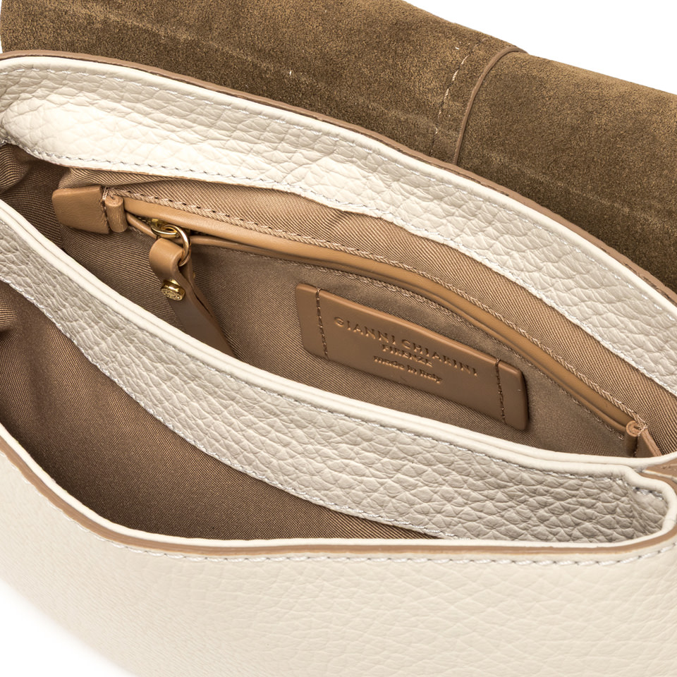 The iconic Helena Round Gianni Chiarini Firenze bag in maxi grain leather boasts a structured design with a contemporary, glam appeal. Thanks to the shoulder straps it is equipped with, it can be worn in two different ways. Practical and organized, it features a double interior compartment and a concealed pocket, also on the back of the bag. Size: 28x16x7.5 cm.
