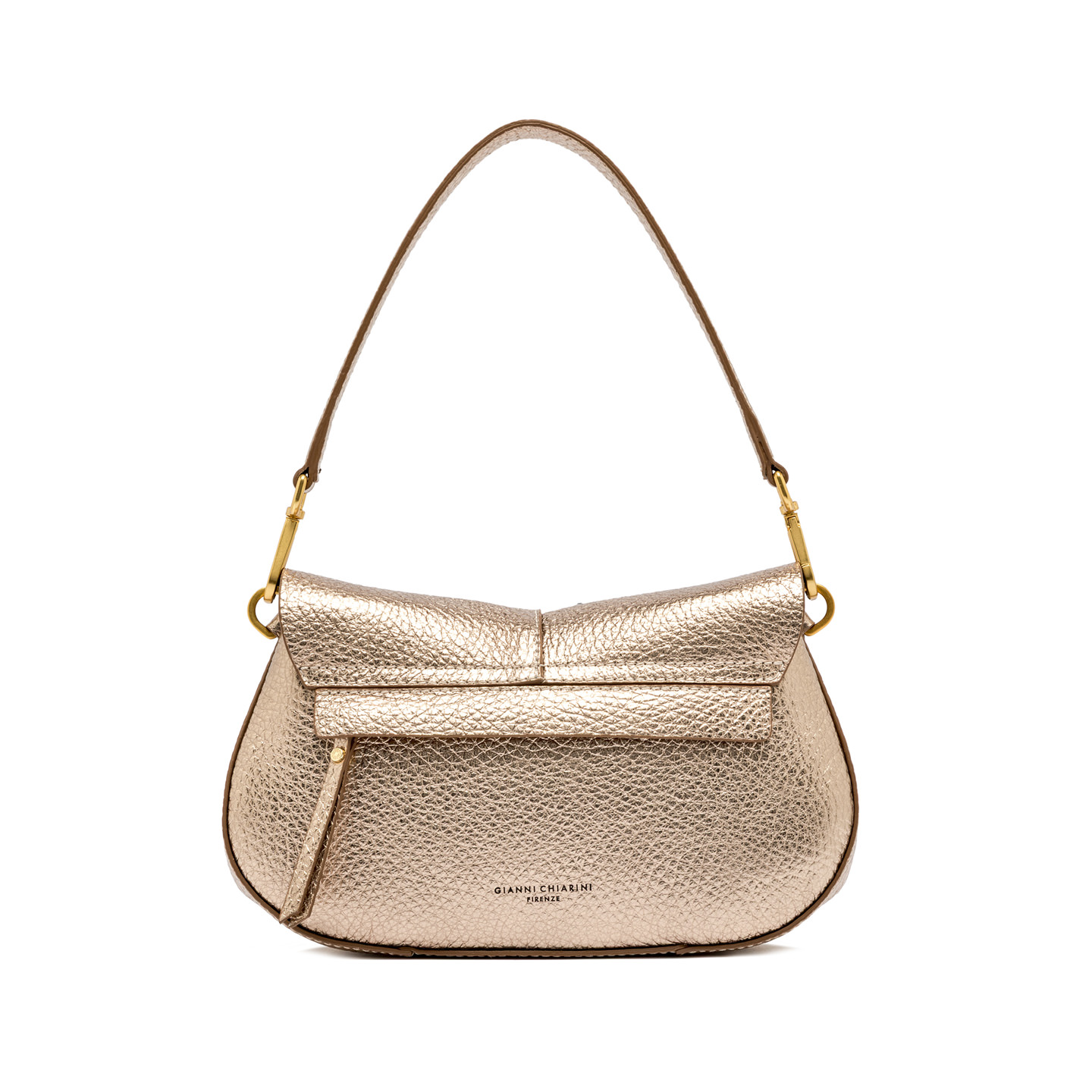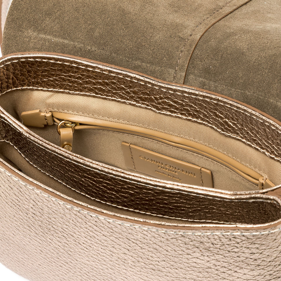 The iconic Helena Round Gianni Chiarini Firenze bag in maxi grain leather boasts a structured design with a contemporary, glam appeal. Thanks to the shoulder straps it is equipped with, it can be worn in two different ways. Practical and organized, it features a double interior compartment and a concealed pocket, also on the back of the bag. Size: 28x16x7.5 cm.