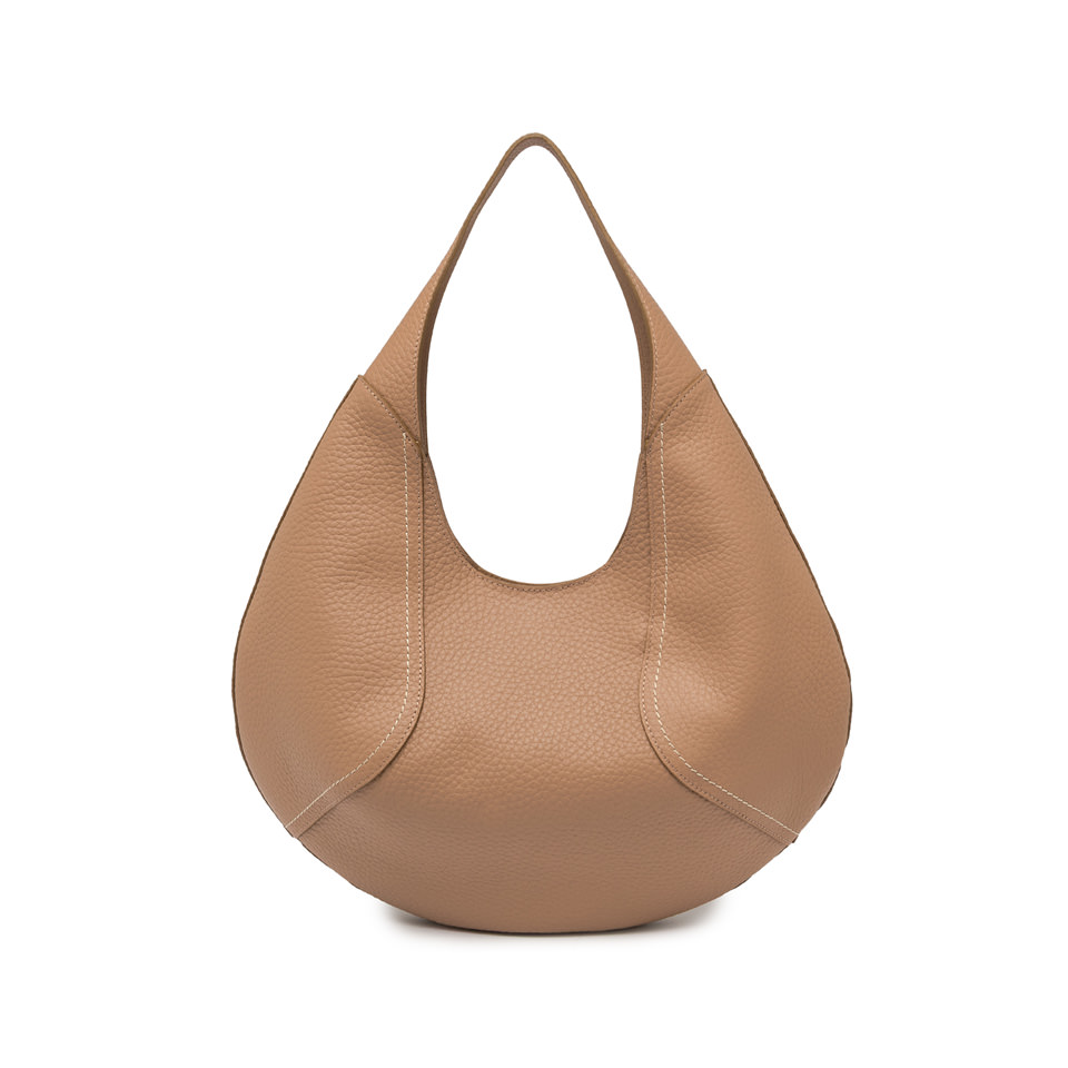 Zeudi is the new shoulder bag by Gianni Chiarini. Made of maxi grain leather, it features a soft half-moon shape. Made of maxi grain leather, it features a practical magnetic clasp closure. Ideal for women with a simple and effortless look. Comes with a convenient zippered pouch. Size: 45x30x12 cm.