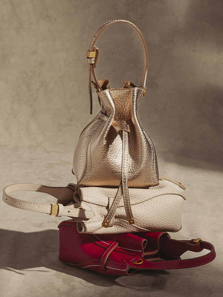 A bucket bag with a sculptural and bold silhouette, SIENNA embodies pure beauty, expressing an ever-changing identity. This new icon embodies the most refined soul of Gianni Chiarini Firenze, enhanced by exquisite details such as contrasting stitching and a warm, enveloping color palette reminiscent of nature.