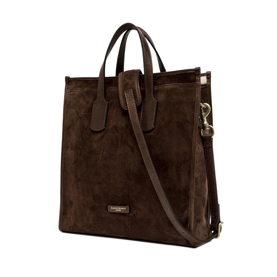 A comfortable and practical shopper bag, perfect for a man looking for a fashion-forward touch for his outfits. Crafted from suede with leather finishes. The two top handles and the adjustable and removable shoulder strap in leather allow to carry the item in different ways, making it suitable for any occasion. Size: 36.5x39x11 cm
