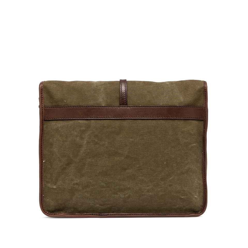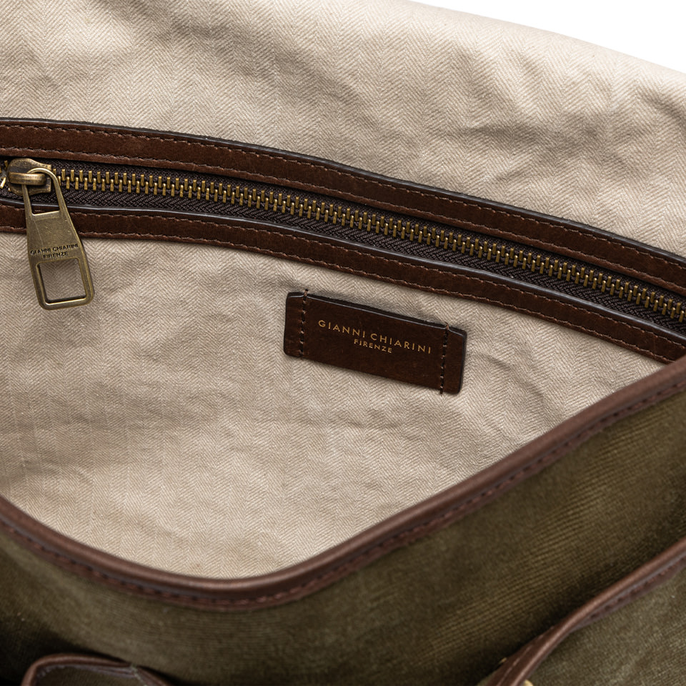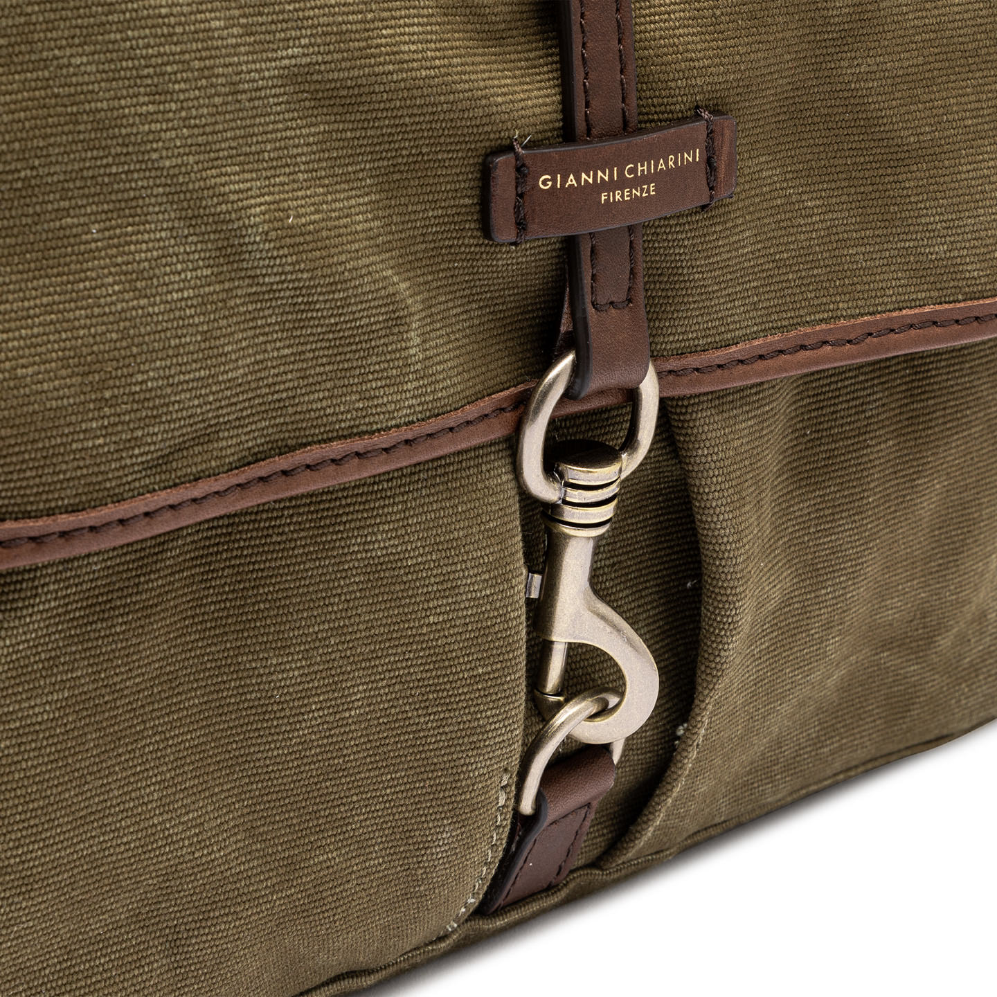 Comfortable and practical, this Berlino tote bag is the perfect briefcase for a man looking for a fashion-forward touch for his outfits. Crafted from tie-dye stone-washed canvas with leather finishes, it features a flap and snap hook closure. The adjustable and removable leather shoulder strap makes it ideal for every occasion. Size: 37x30x10.5 cm.