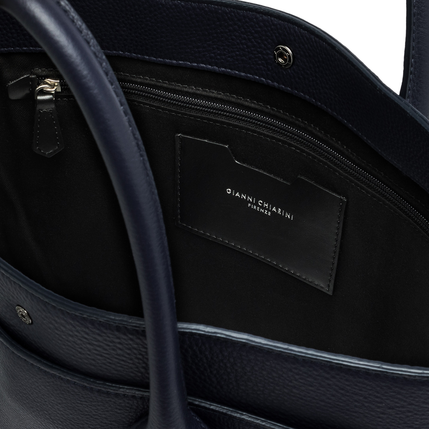 Comfortable and practical cross-body bag, ideal for a man who loves to interpret timeless style in a contemporary way. Made of hammered leather, it features a double compartment with zip and a large pocket on the front. The adjustable fabric shoulder strap offers various carrying options. Size: 38x30x7 cm.