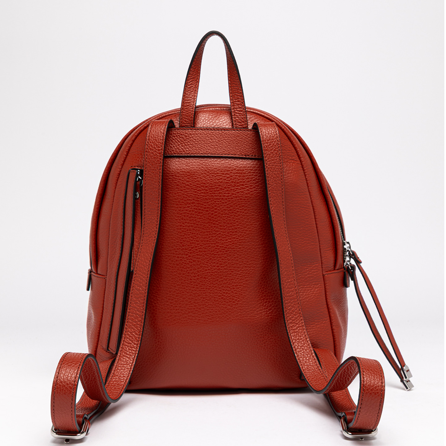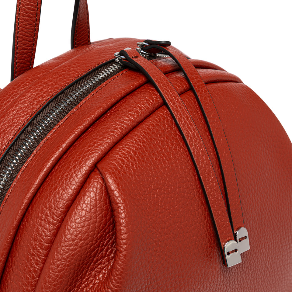 Emanuela backpack is made of soft leather. Its simple and casual look features a large compartment with zip closure. Adjustable shoulder straps on the back, for practical daily use. Perfect for those looking for a compact and functional accessory. Size: 28x30x12 cm.