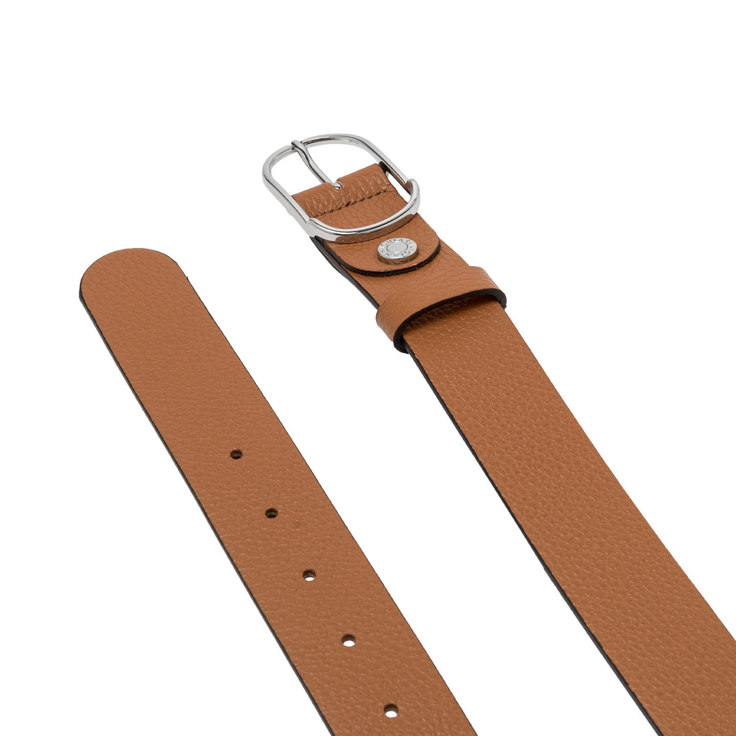 This flat belt has a minimalist design, ideal for enhancing both casual and elegant outfits. Crafted from premium hammered leather, it is enriched with a logoed metal buckle.