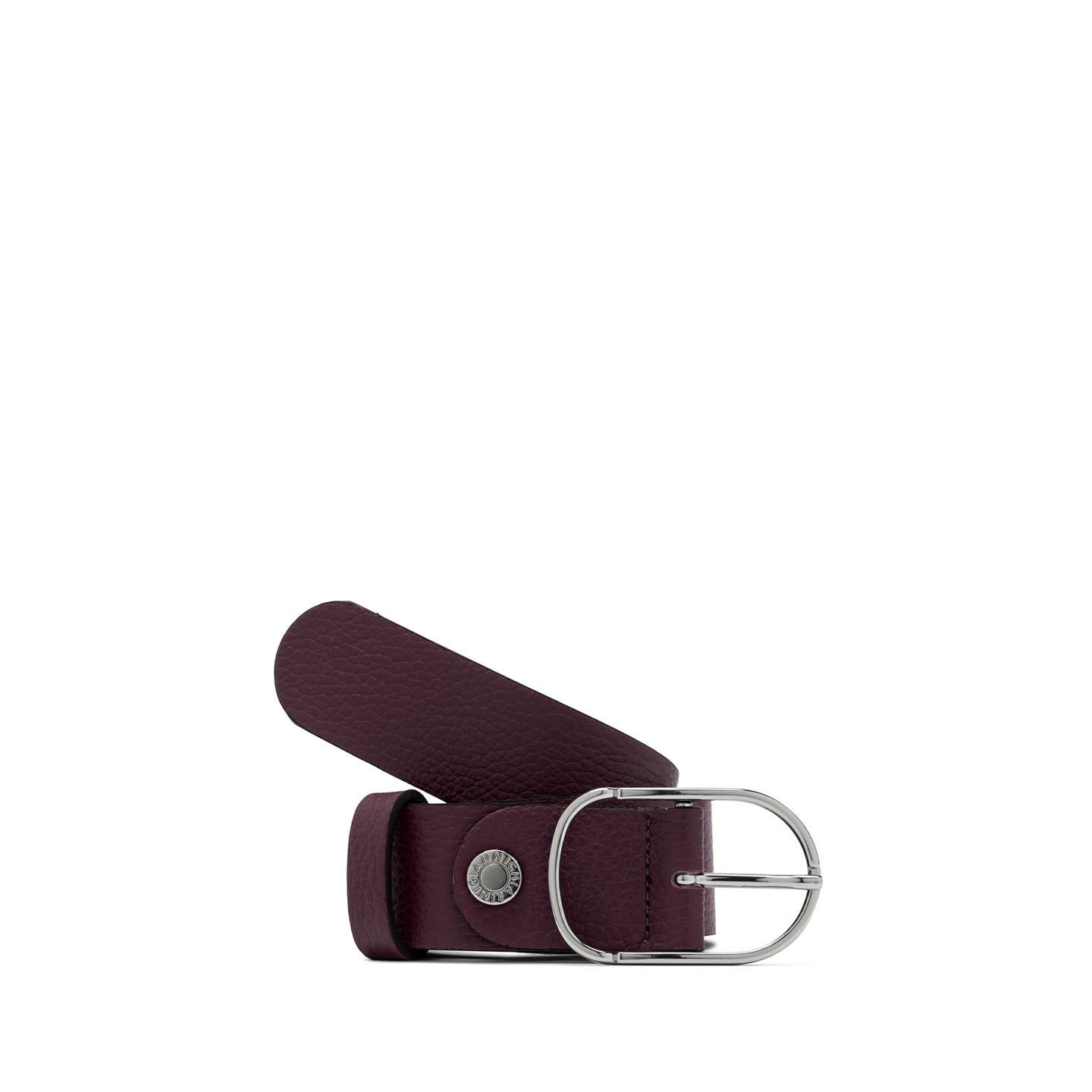 This curved belt has a minimalist design, ideal for enhancing both casual and elegant outfits. Crafted from premium hammered leather, it is enriched with a logoed metal buckle.