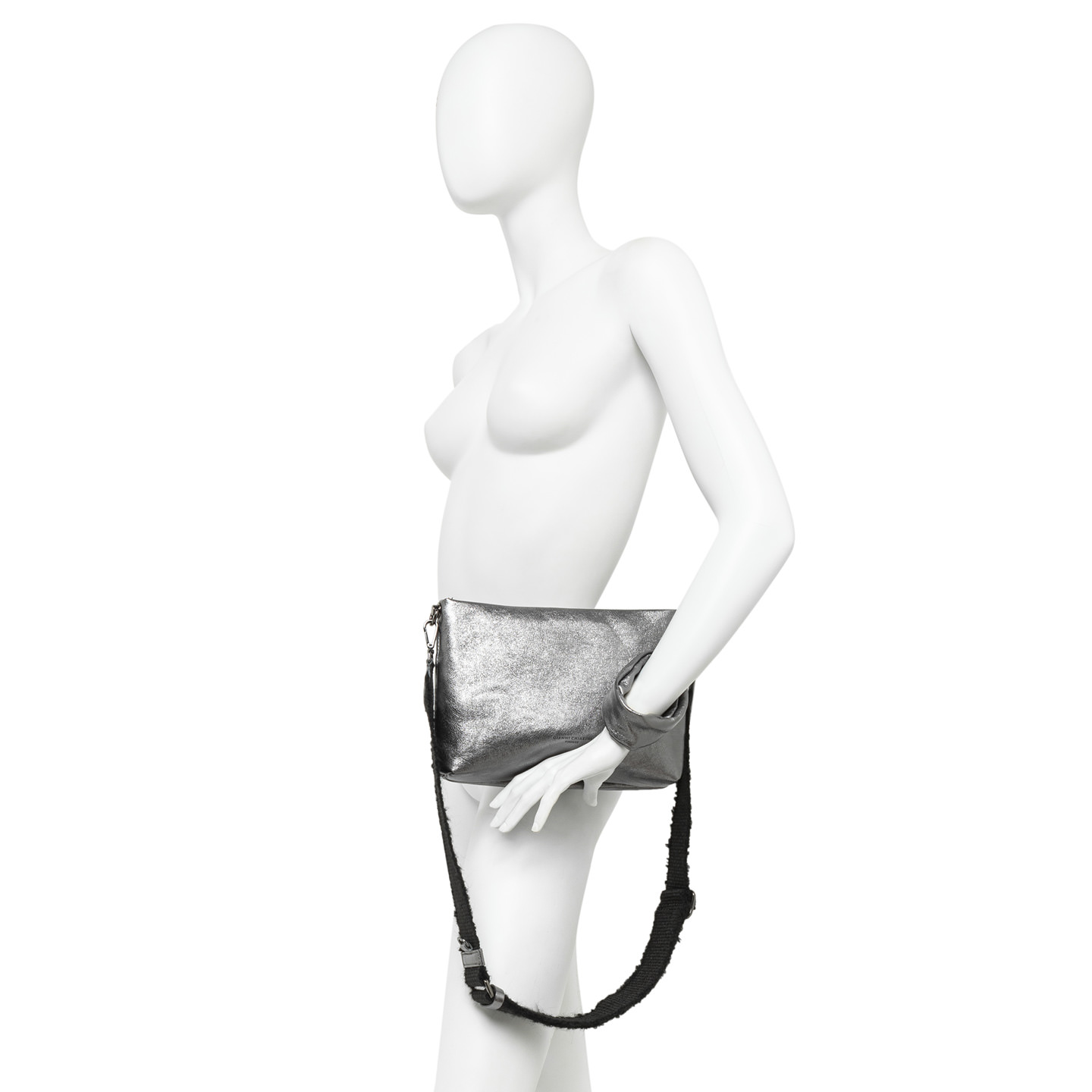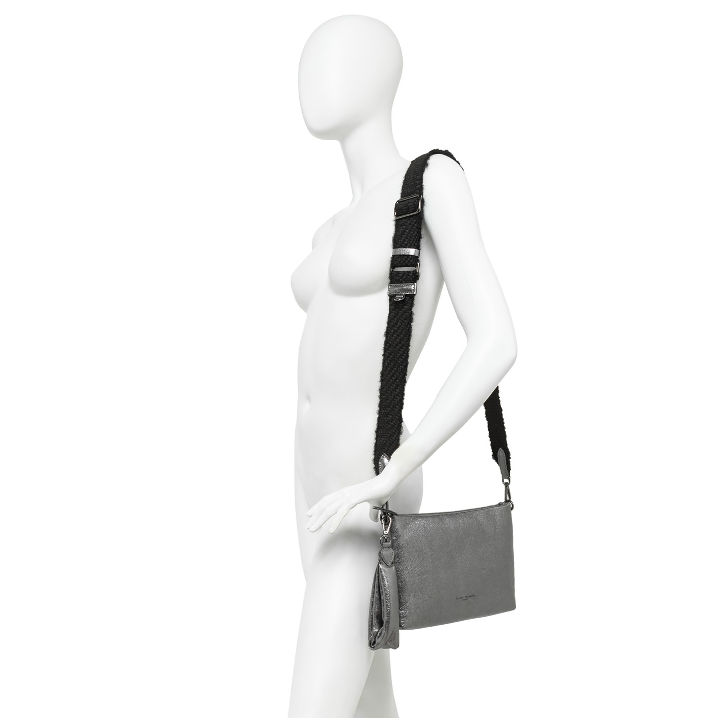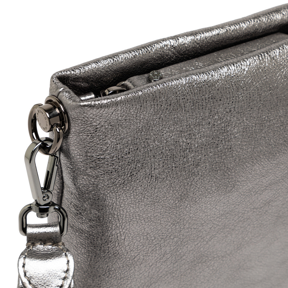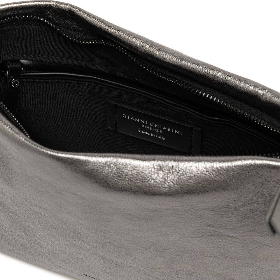 Brenda is the iconic clutch by Gianni Chiarini Firenze, crafted from metalized patent leather. The maxi strap allows it to be worn on the wrist, while the interior features a flat pocket. The woven fabric strap, adjustable and removable, makes it easy to carry cross-body, combining practicality with sophistication. Size: 28x20x6 cm.