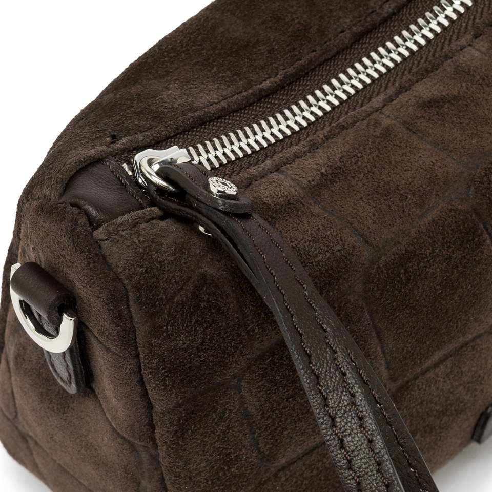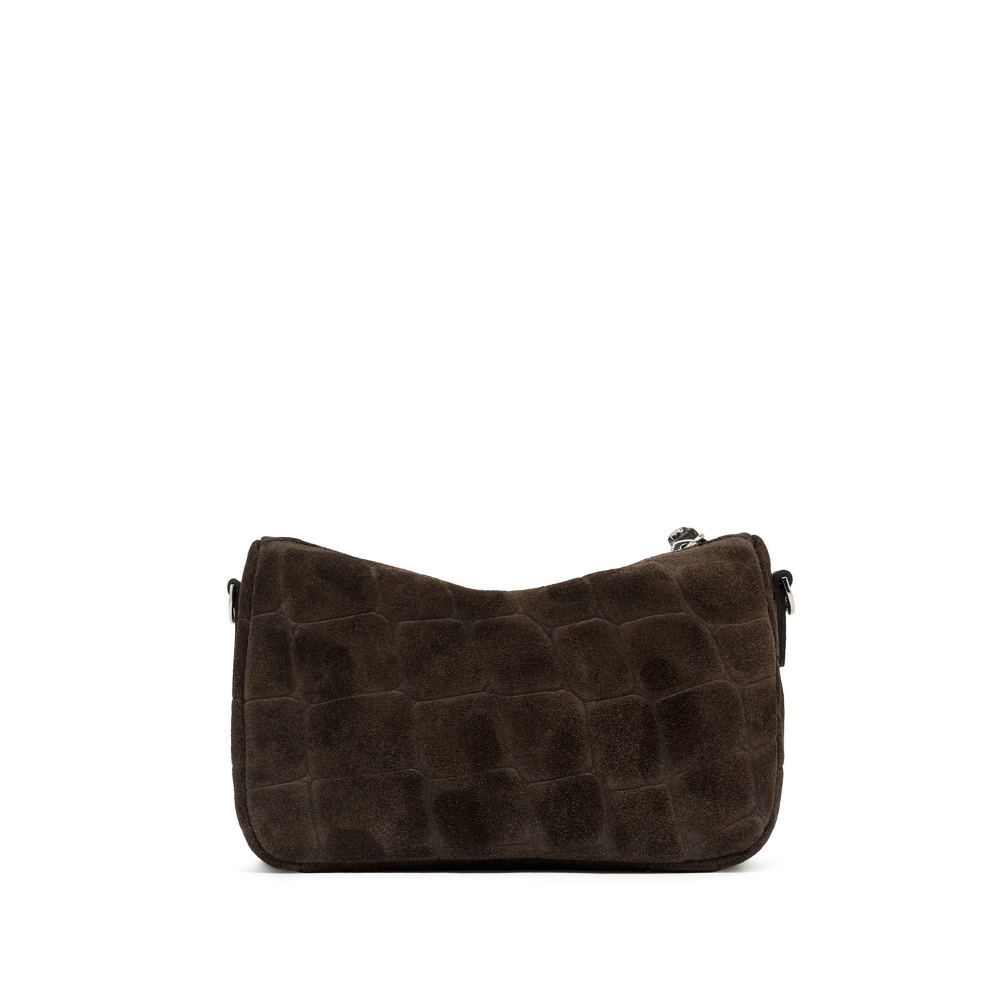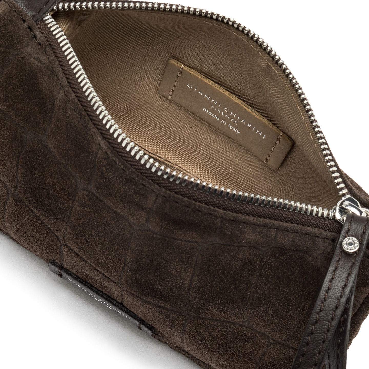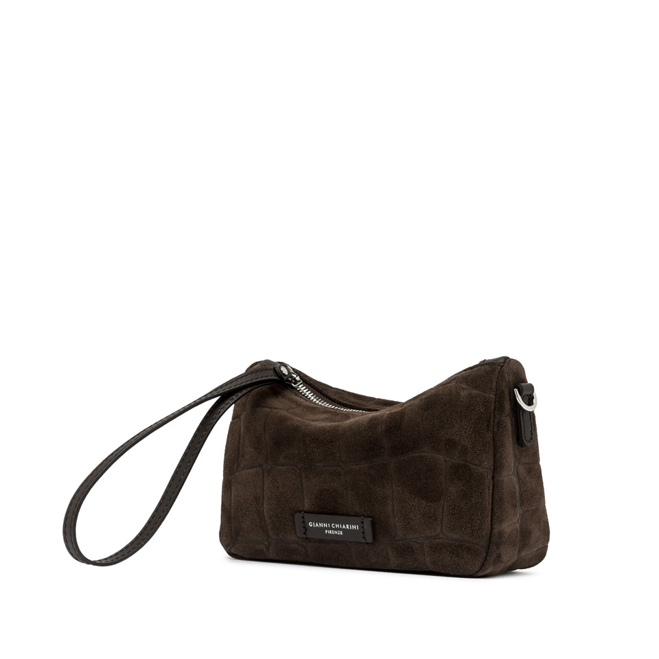 Nora Pouch by Gianni Chiarini is made of hammered leather. It features a leather strap to wear it at the wrist, in addition to an adjustable shoulder strap in leather, both removable. Zipper closure. Size: 20.5x14.5x8 cm.