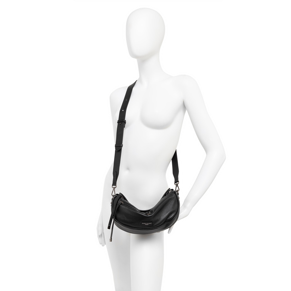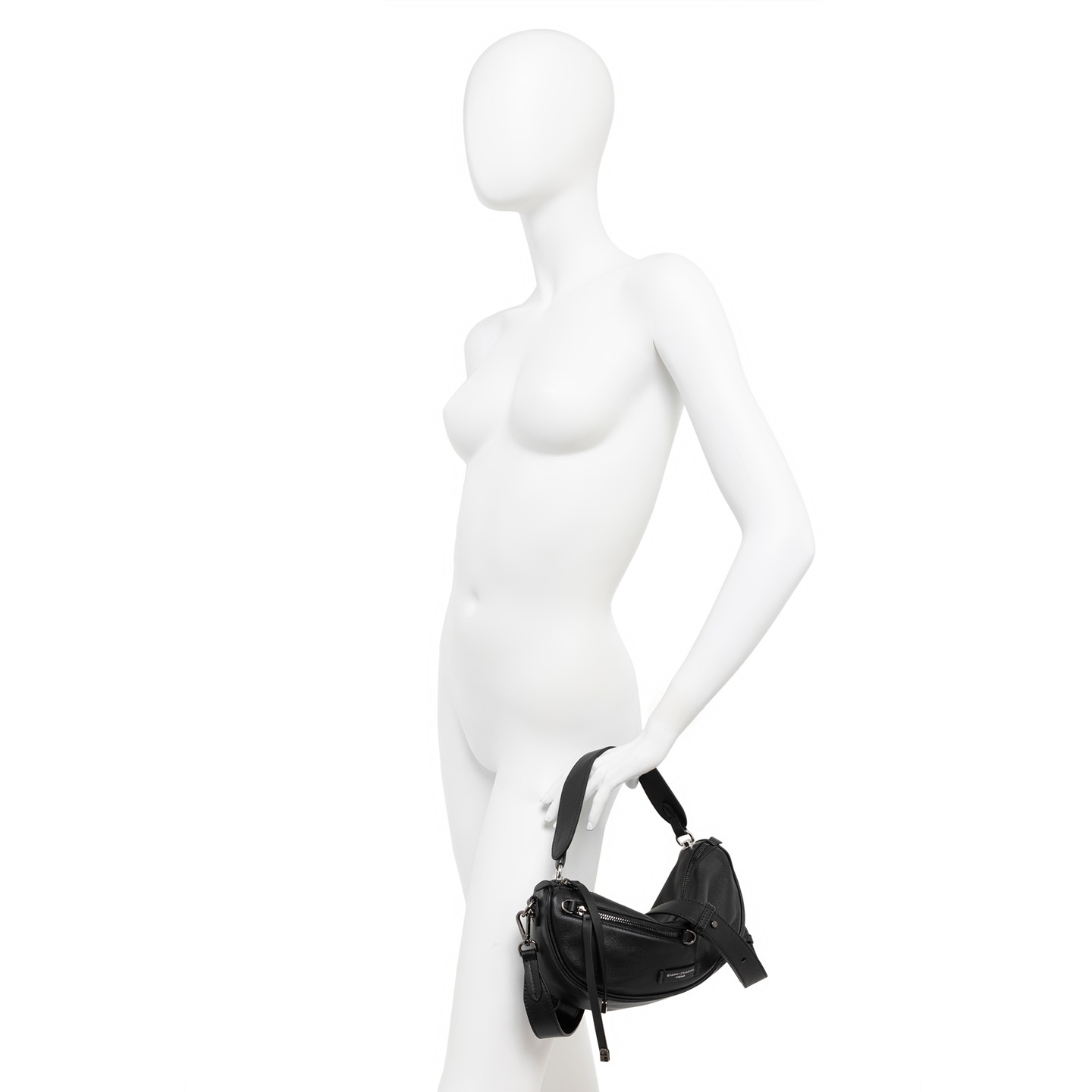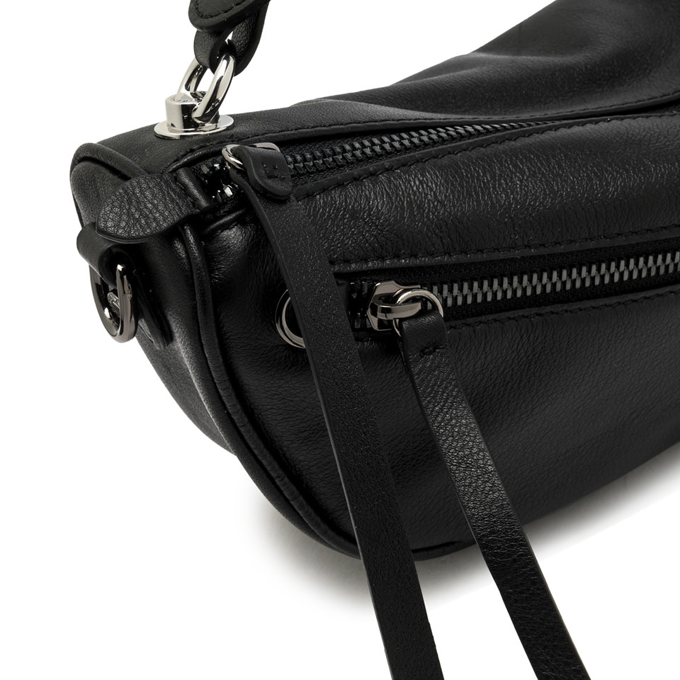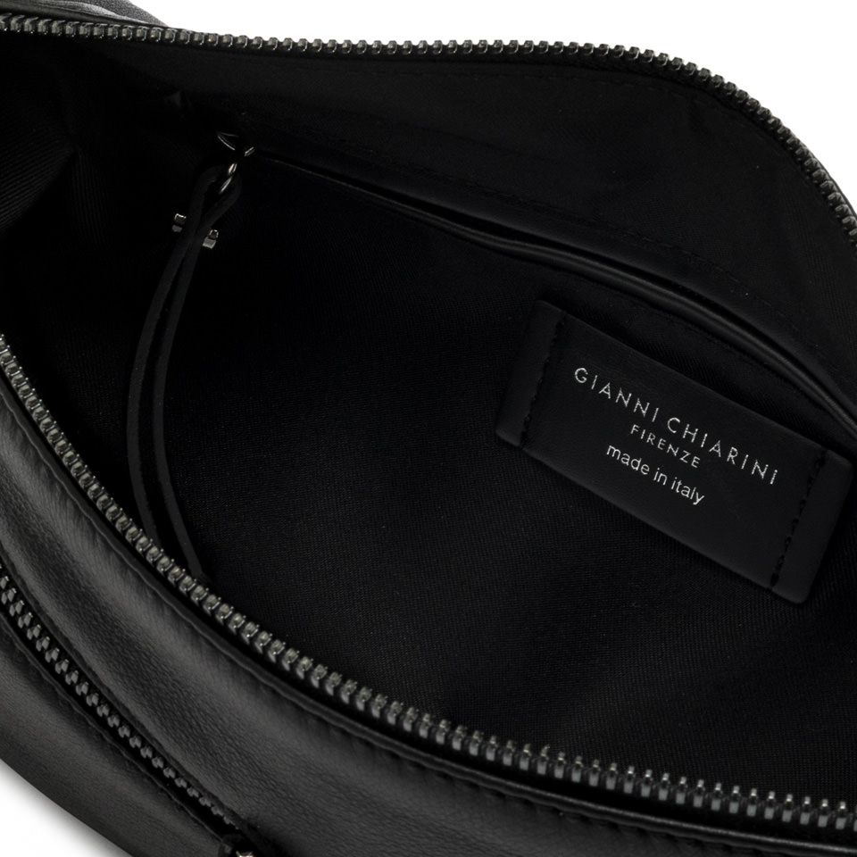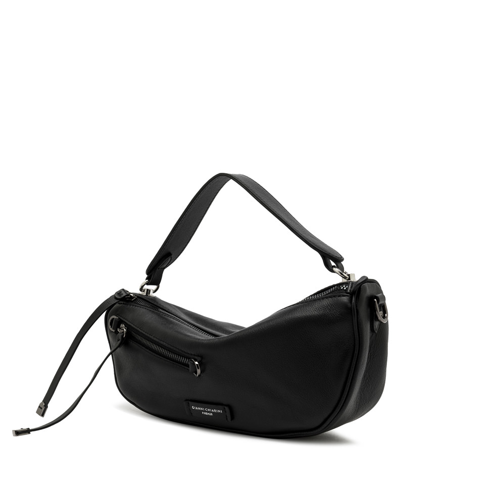 This new Cindy bag by Gianni Chiarini Firenze, made of natural-looking lightweight leather, combines a rock and urban look with decorative zips and logoed details. It features a zip closure, a color matching handle to use it as a handbag and a front zipped pocket. Complete with a removable shoulder strap for cross-body use, it is perfect for those looking for a bold and refined style. Size: 30x16x8 cm.
