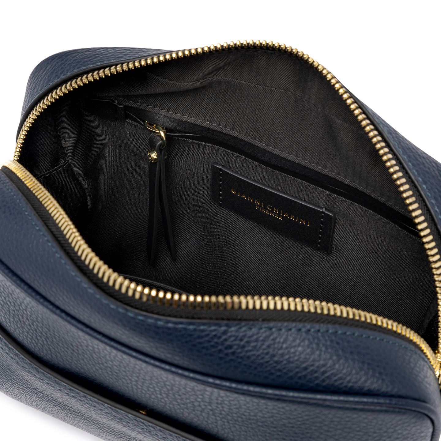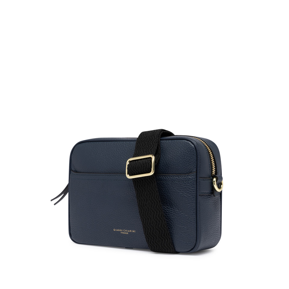 Nina by Gianni Chiarini Firenze is a practical hammered leather shoulder bag, characterized by a square shape. It features a main compartment with zip closure and a flat pocket on the front. Equipped with an woven fabric shoulder strap for even more versatile use. Size: 25x19x8 cm.