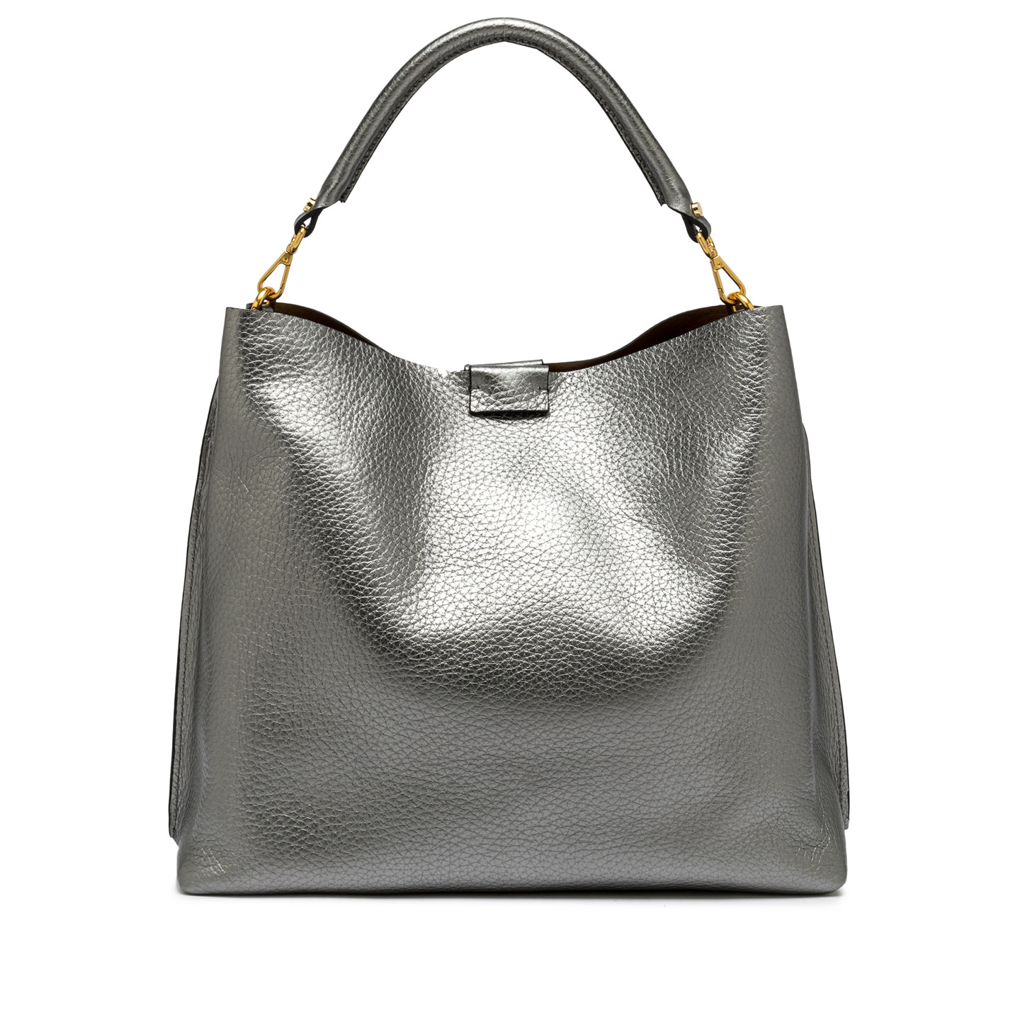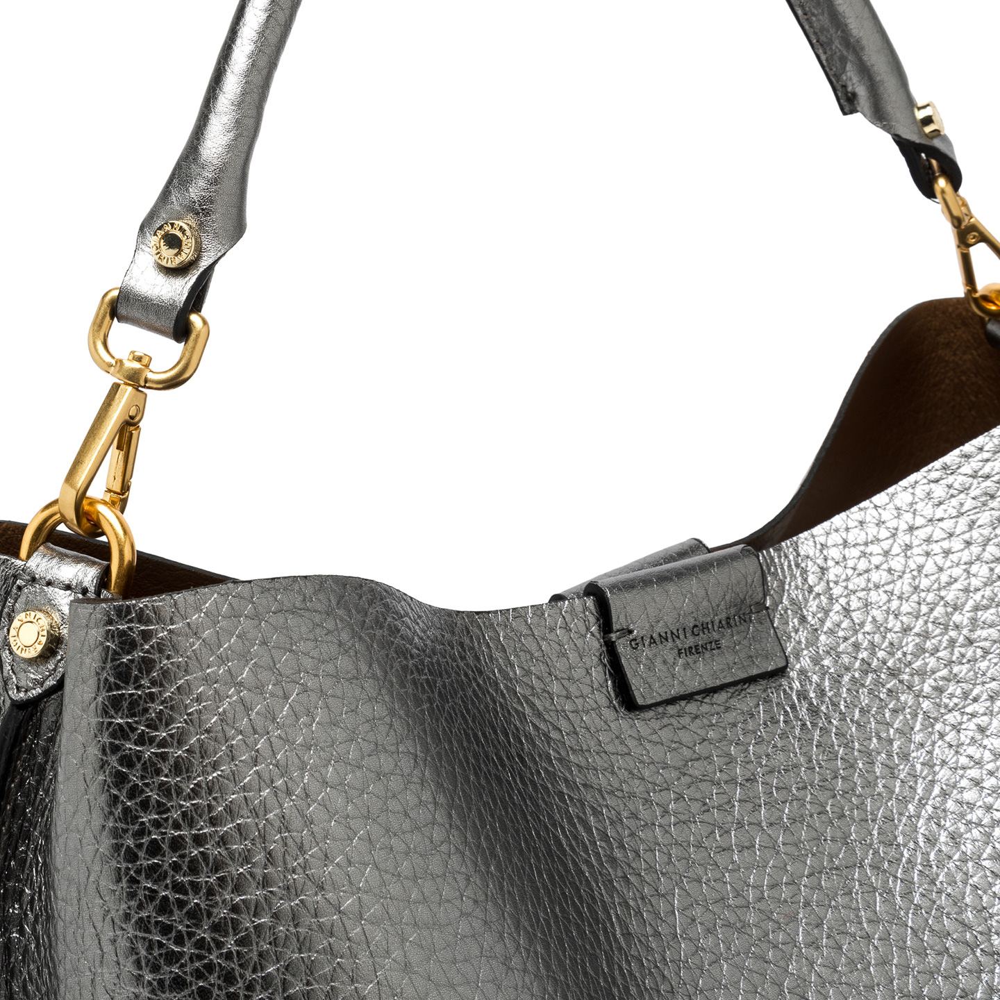 The Aretha bag by Gianni Chiarini Firenze is made of maxi grain double leather and stands out with its minimalist design and clean lines. Inside, a practical zippered compartment ensures security, while the leather top handle offers versatility and comfort. Size: 36x31x14 cm