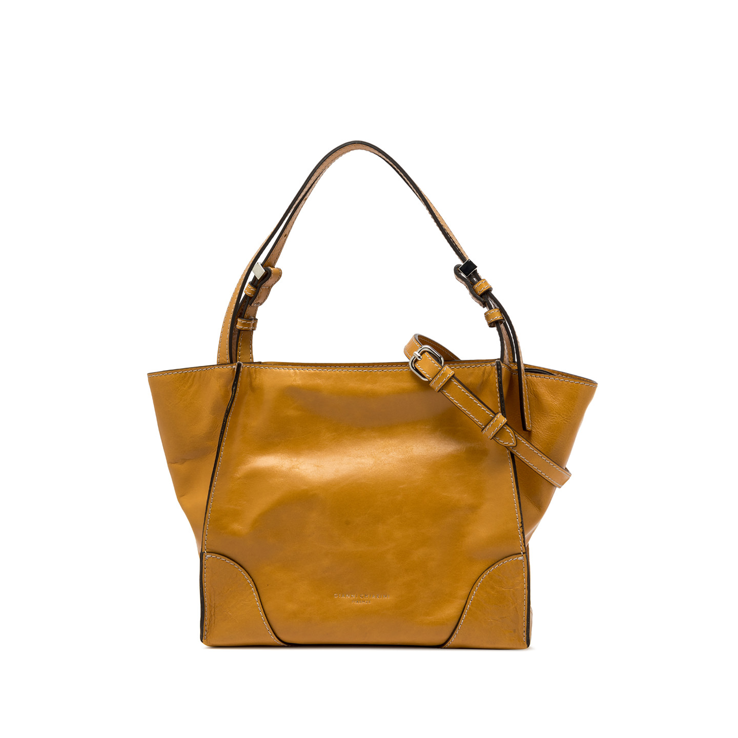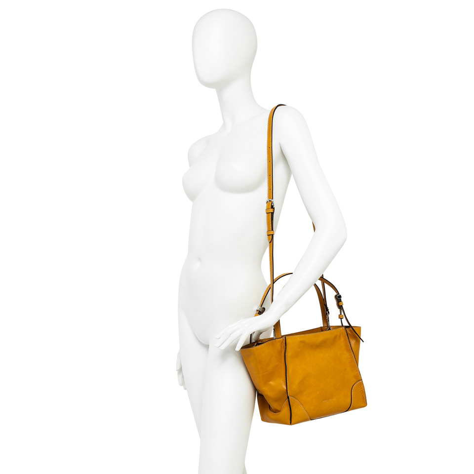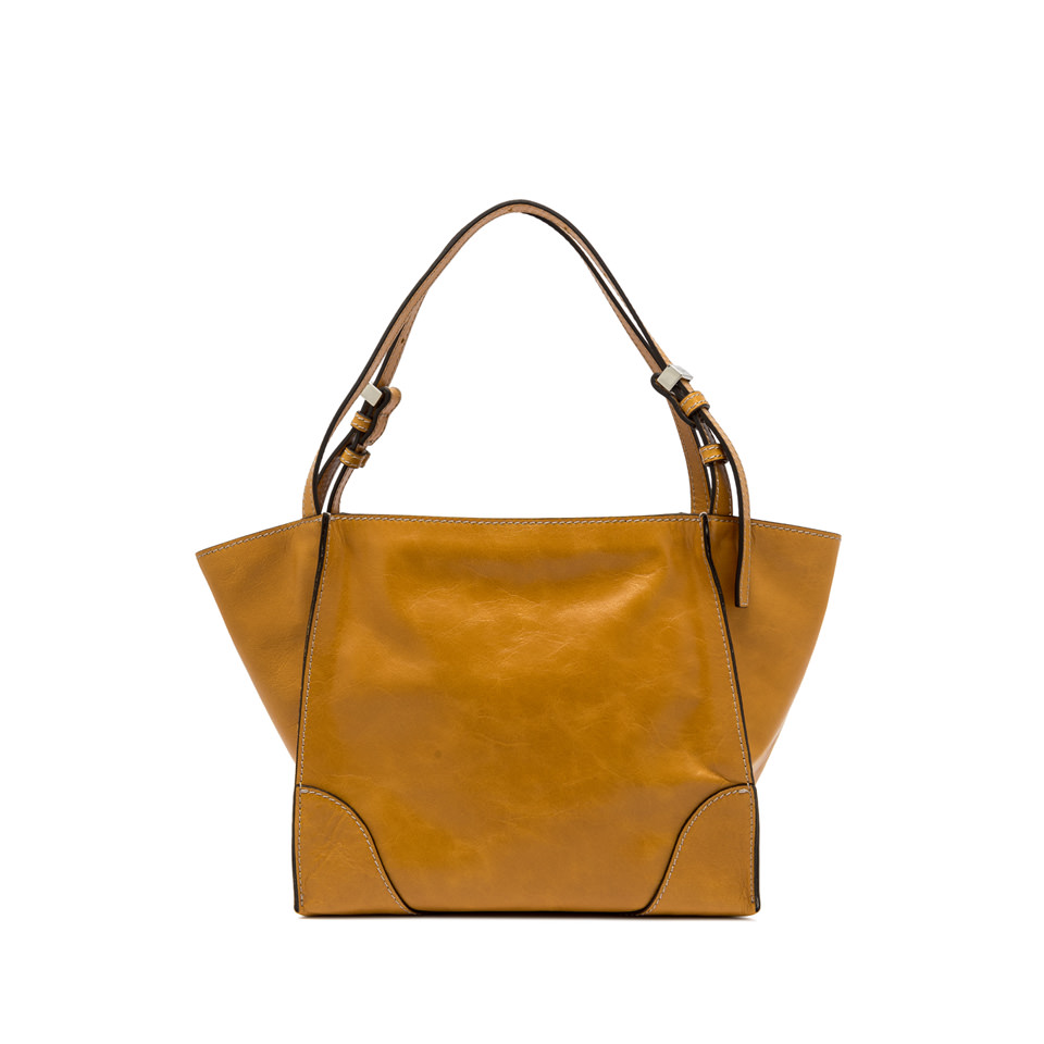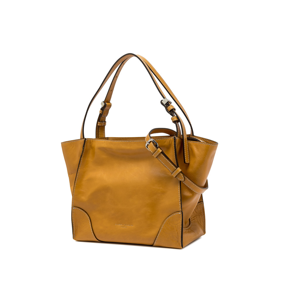 Merida is a new shoulder bag with a soft shape, ideal for combining with casual looks or for playing down more chic ones. Characterized by a raw cut construction and contrasting stitching, it is made of vintage-effect leather. It features a zip closure, two tone-on-tone leather handles and a practical removable shoulder strap for those who prefer to wear it cross-body. Size: 25x22x13 cm.