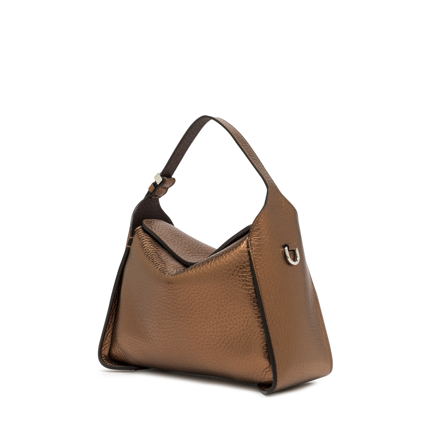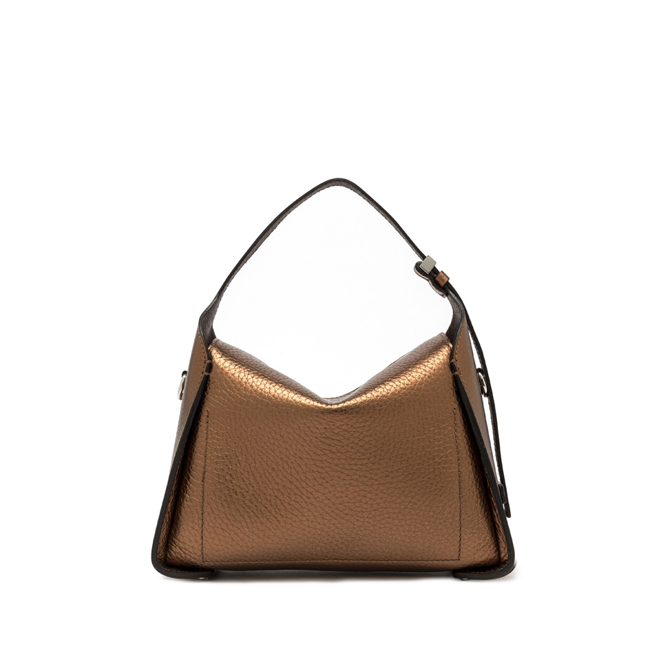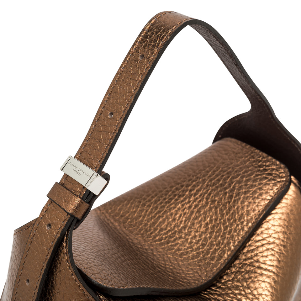 Penelope is a cool and feminine bag with a youthful attitude. Crafted in double maxi grain leather, it features a boxy architecture and a convenient flap closure with magnetic clasp. Enhanced by the iconic logoed rectangular ring loop, which allows you to adjust the shoulder strap for even more practical and versatile use. Size: 27x19x11 cm.