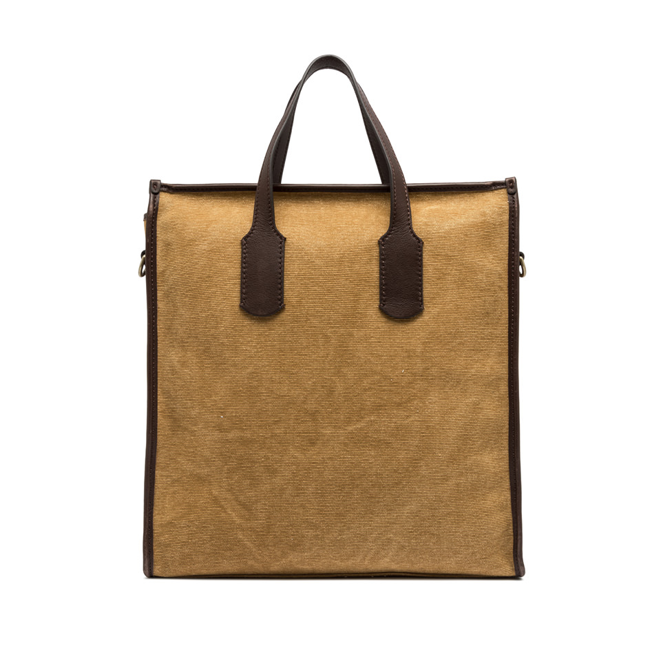 A comfortable and practical shopper bag, perfect for a man looking for a fashion-forward touch for his outfits. Crafted from tie-dye canvas with leather finishes. The two top handles and the adjustable and removable shoulder strap in leather allow to carry the item in different ways, making it suitable for any occasion. Size: 36.5x39x11 cm.