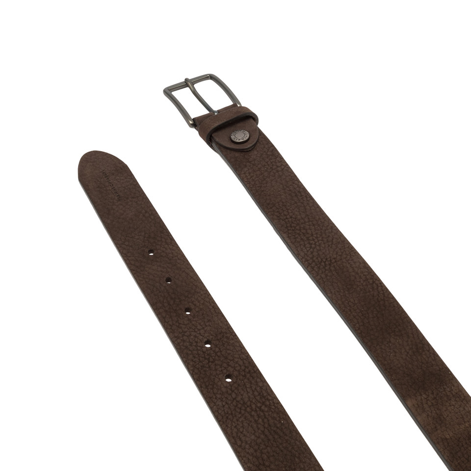 Flat belt made in nubuck leather, with clean lines, perfect for adding a touch of style to any outfit. Finished with a metal buckle featuring a logoed rivet.