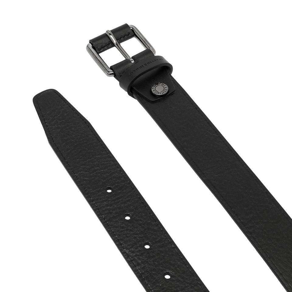 Flat belt with a minimalist design, the perfect accessory to enhance your outfits. Made from smooth leather, it features a metal buckle with a logo that adds a touch of elegance.