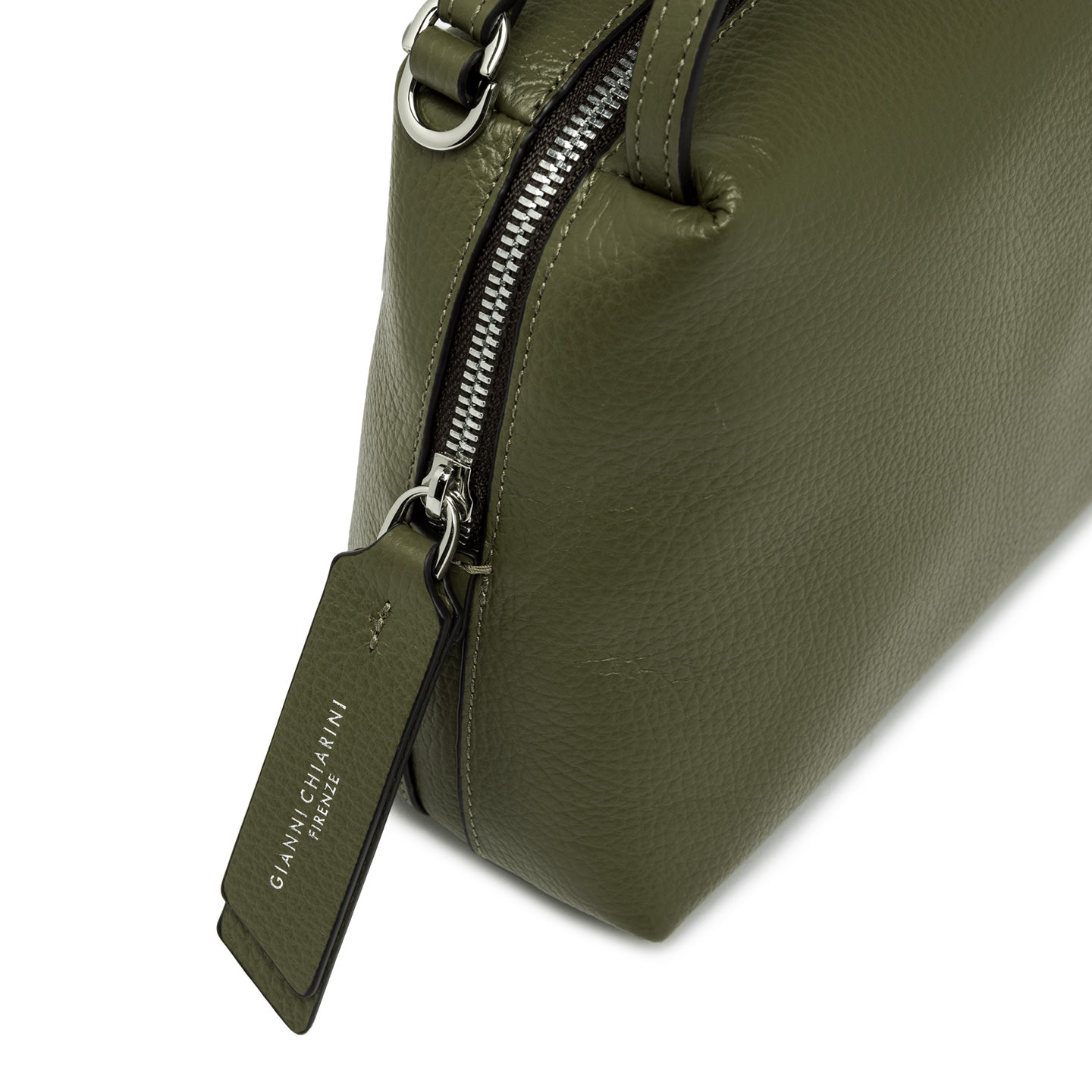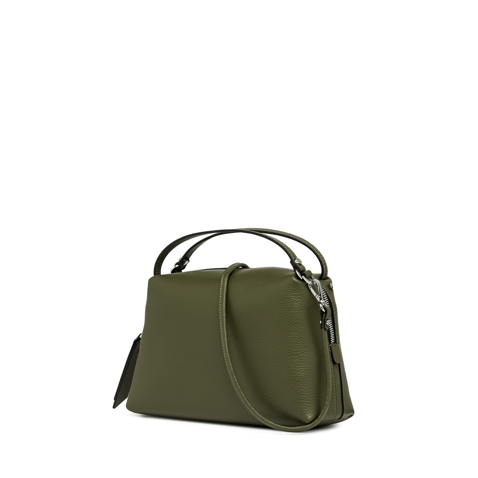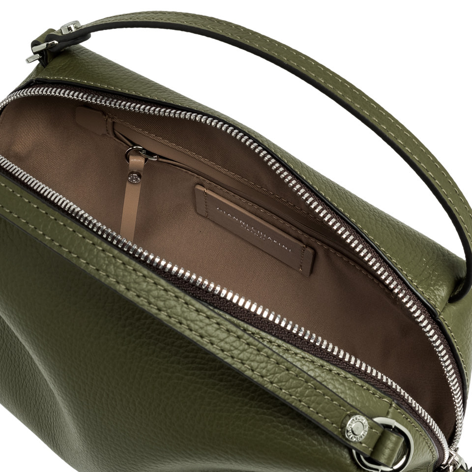 This Alifa bag by Gianni Chiarini Firenze with double handles is compact, roomy and lightweight. Crafted in hammered leather and equipped with a zip closure, it's the ideal accessory to carry by hand or over the shoulder thanks to its practical adjustable and removable strap. Size: 26x16x12 cm.
