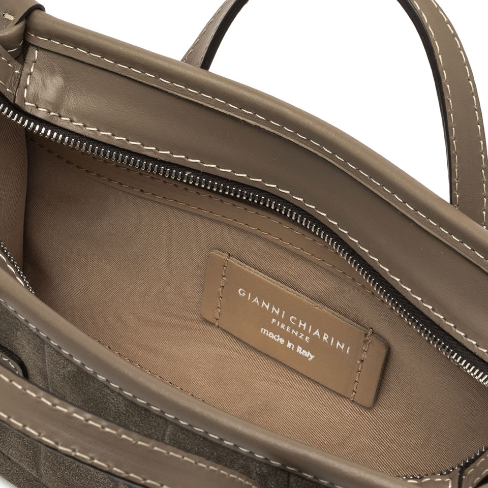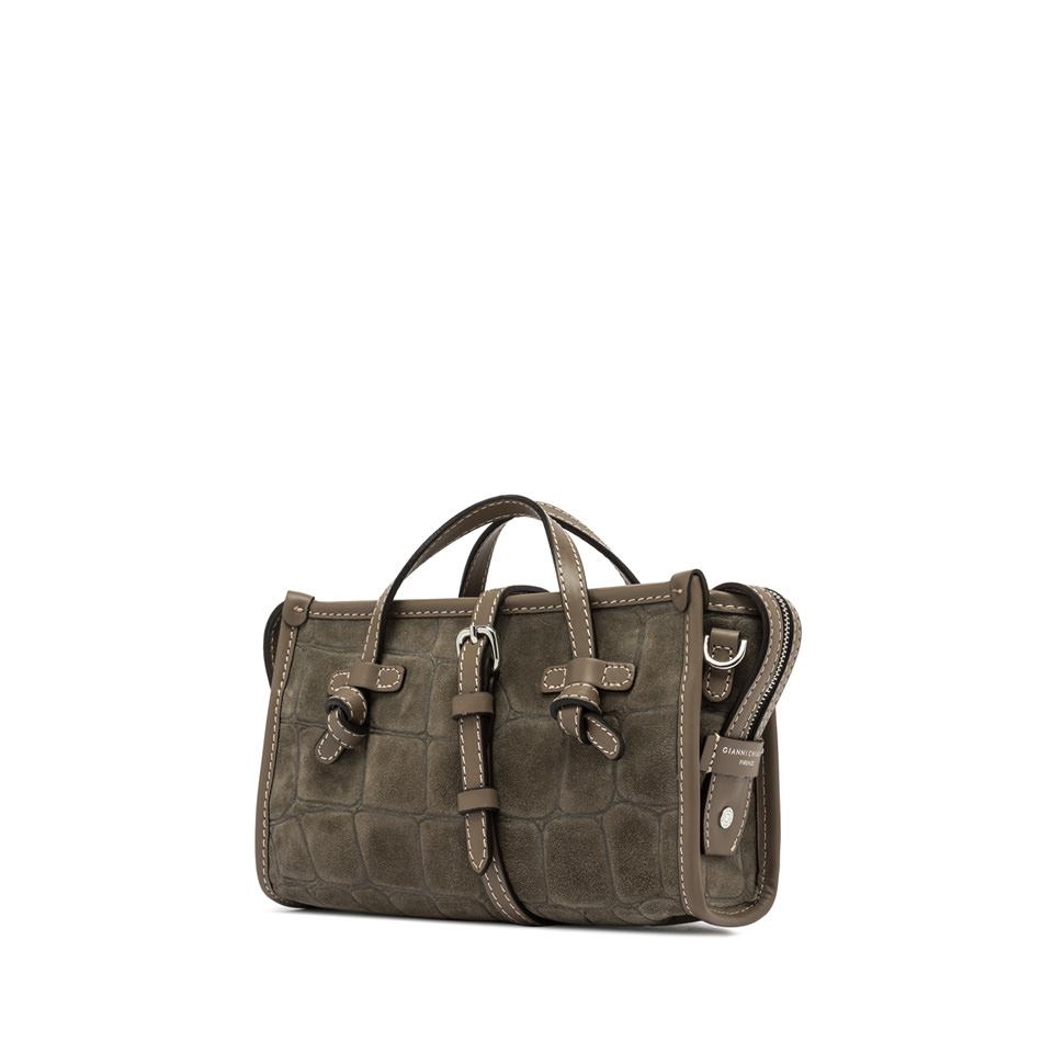 Marcella Joy by Gianni Chiarini Firenze is crafted in suede with a maxi crocodile print, a distinctive feature that adds character and style. This versatile bag can be carried by hand or with its slim leather shoulder strap, making it the perfect accessory for a chic and contemporary look. It features a zip closure for added security and convenience. Size: 23x13.5x8.5 cm.