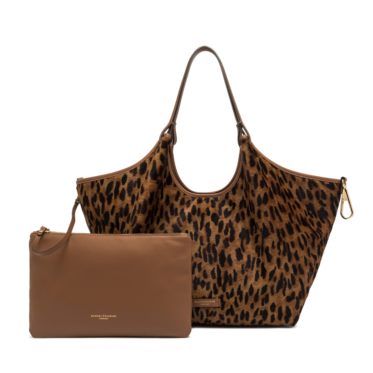 The Brand's iconic DUA bag in pony skin-effect leather. Unlined single compartment with a small clutch bag in solid color smooth leather with zip closure. Practical and essential, it is perfect to enhance any woman's look. Wearable as shoulder bag. Size: 38x34x16 cm.