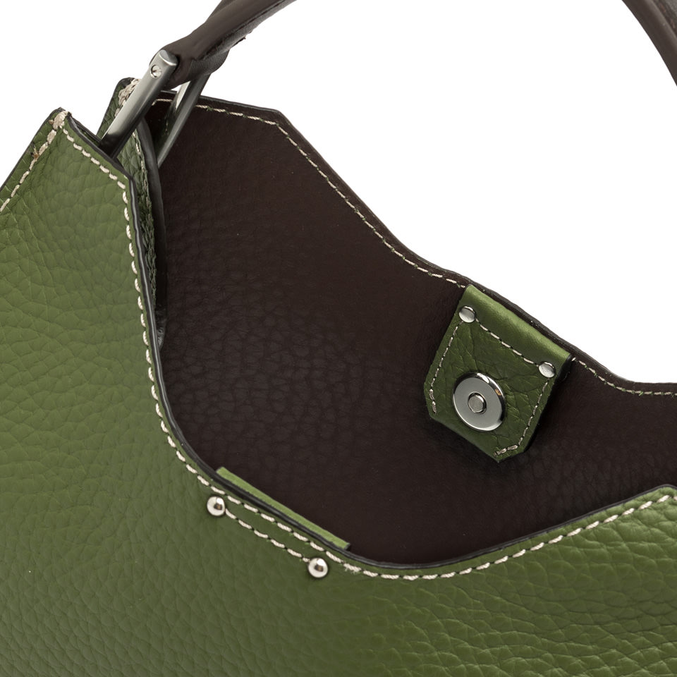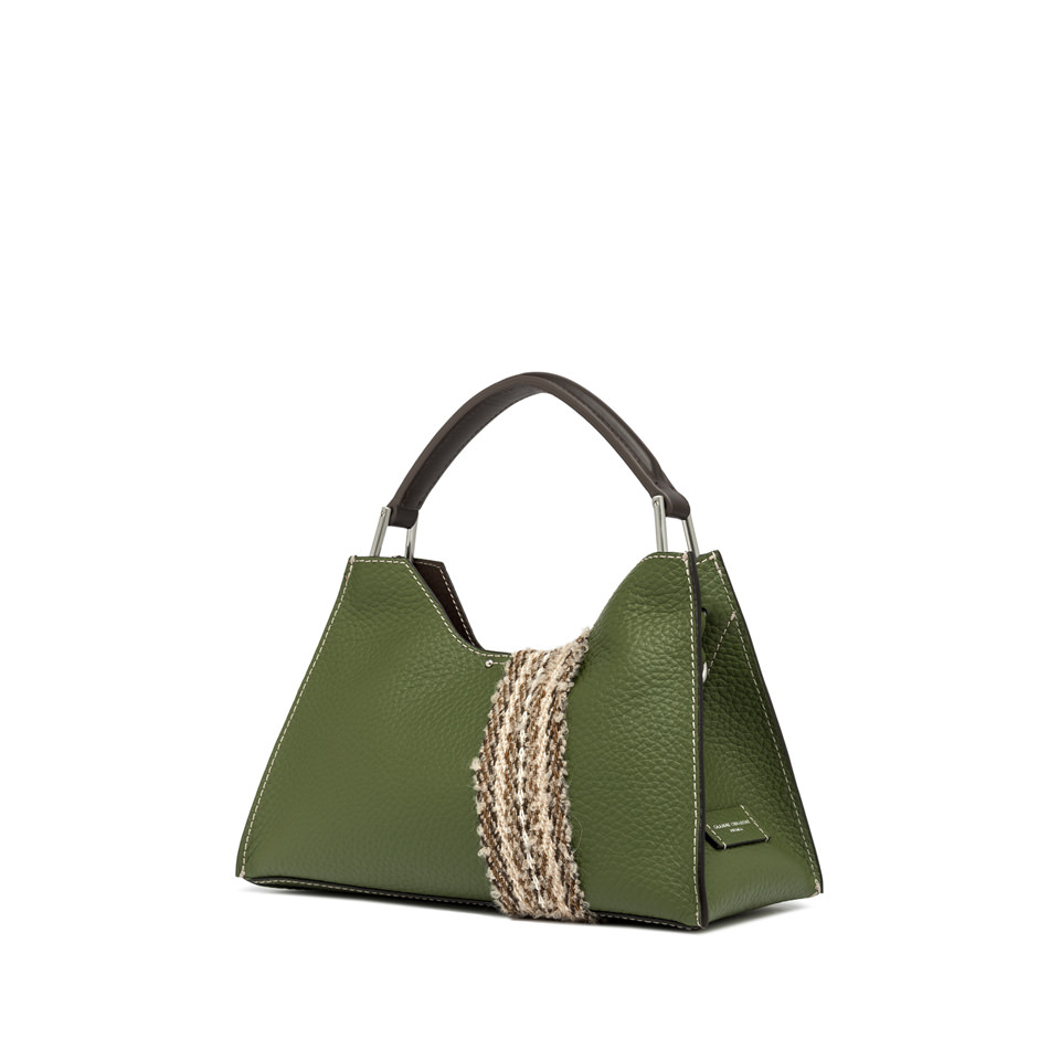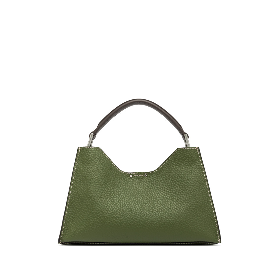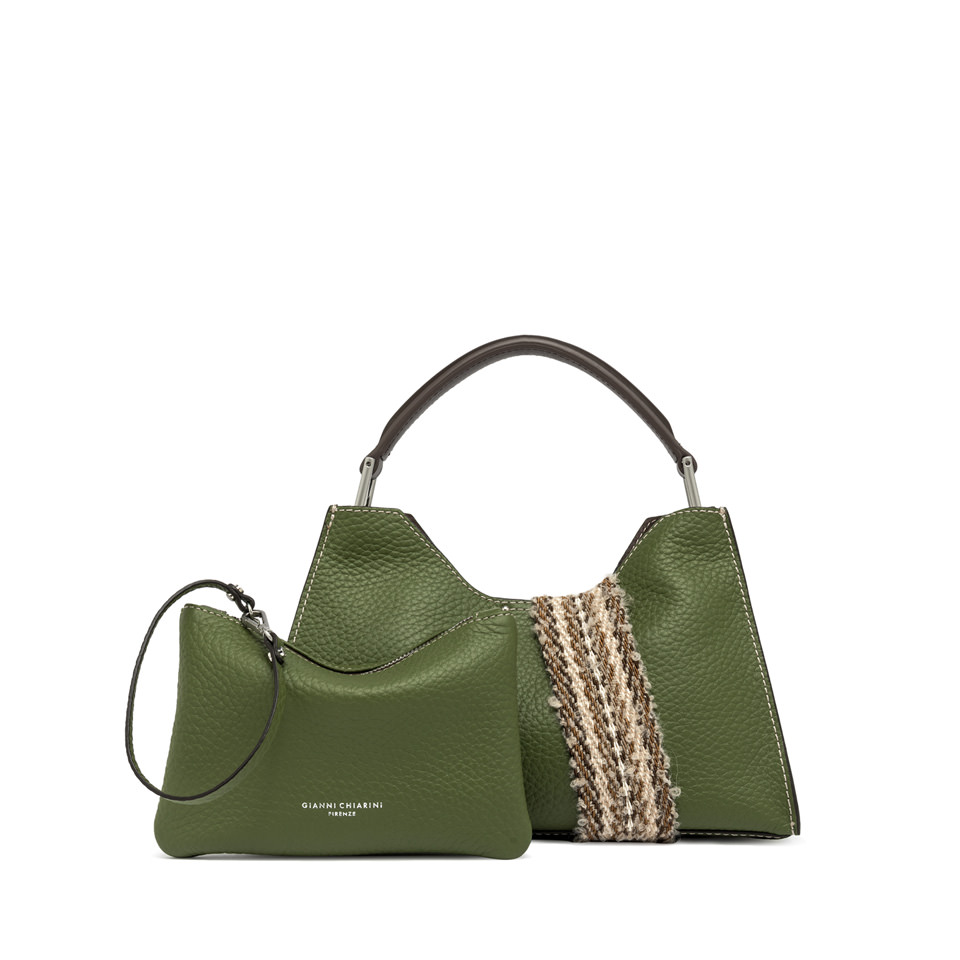 Aurora by Gianni Chiarini Firenze is characterized by a trapezoidal shape. A symbol of contemporary elegance, it is made from double maxi-grain leather and enriched with metal details. Equipped with a practical, adjustable, and removable leather strap for dual carrying options. Top magnetic clasp closure. Size: 32x22x11 cm.