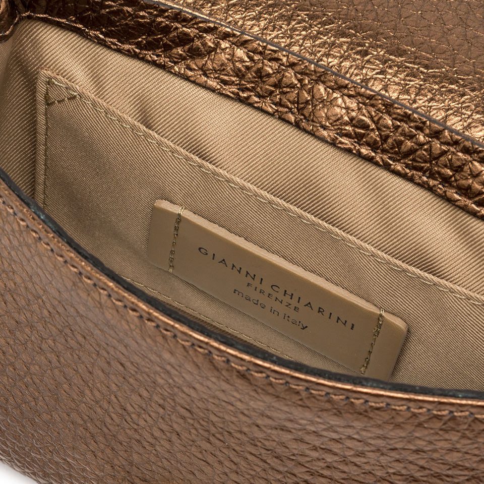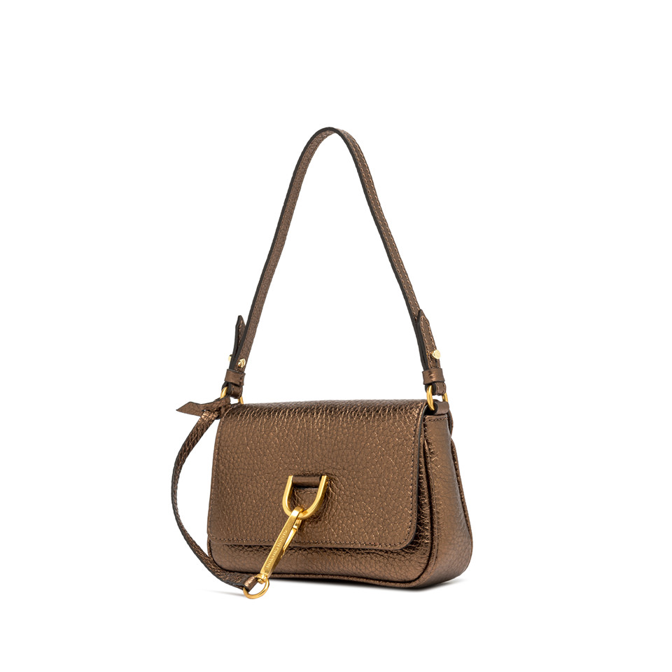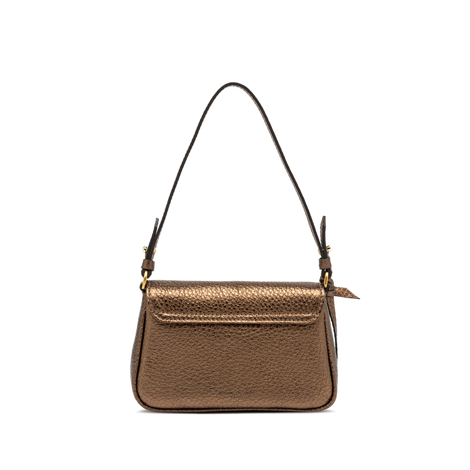 The new Marisol bag from the Gianni Chiarini Firenze collection is crafted from maxi grain leather. Elegant and contemporary, it is designed for a woman who is in tune with the times and stands out for its geometric shape. Equipped with a top handle for comfortable shoulder carrying, it features a main compartment with zip and self-locking closure. Size: 21x14x5 cm.