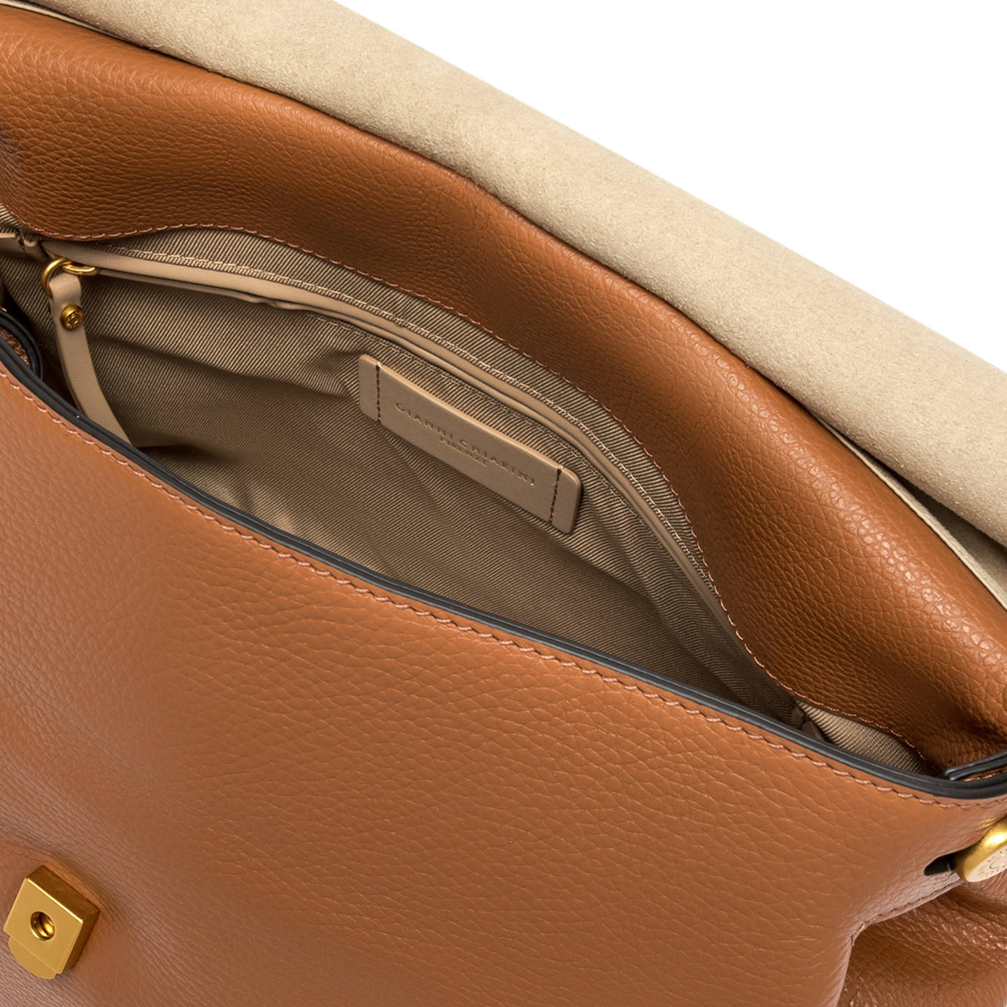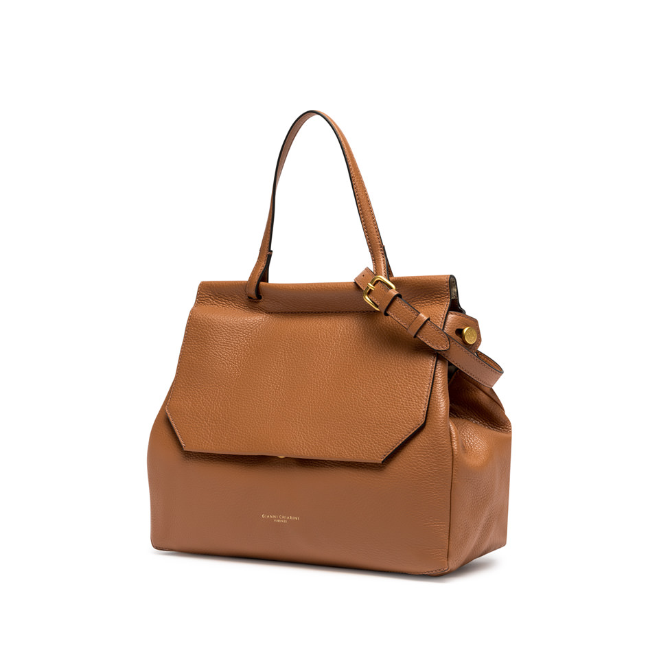 This brand new Ottavia bag by Gianni Chiarini Firenze is ideal for completing a daily casual outfit. Made of soft hammered leather, it features a color matching flap closure and a practical top handle to carry it as a handbag. Equipped with an adjustable leather shoulder strap, it is also perfect for cross-body use. Size: 34x27x15 cm.