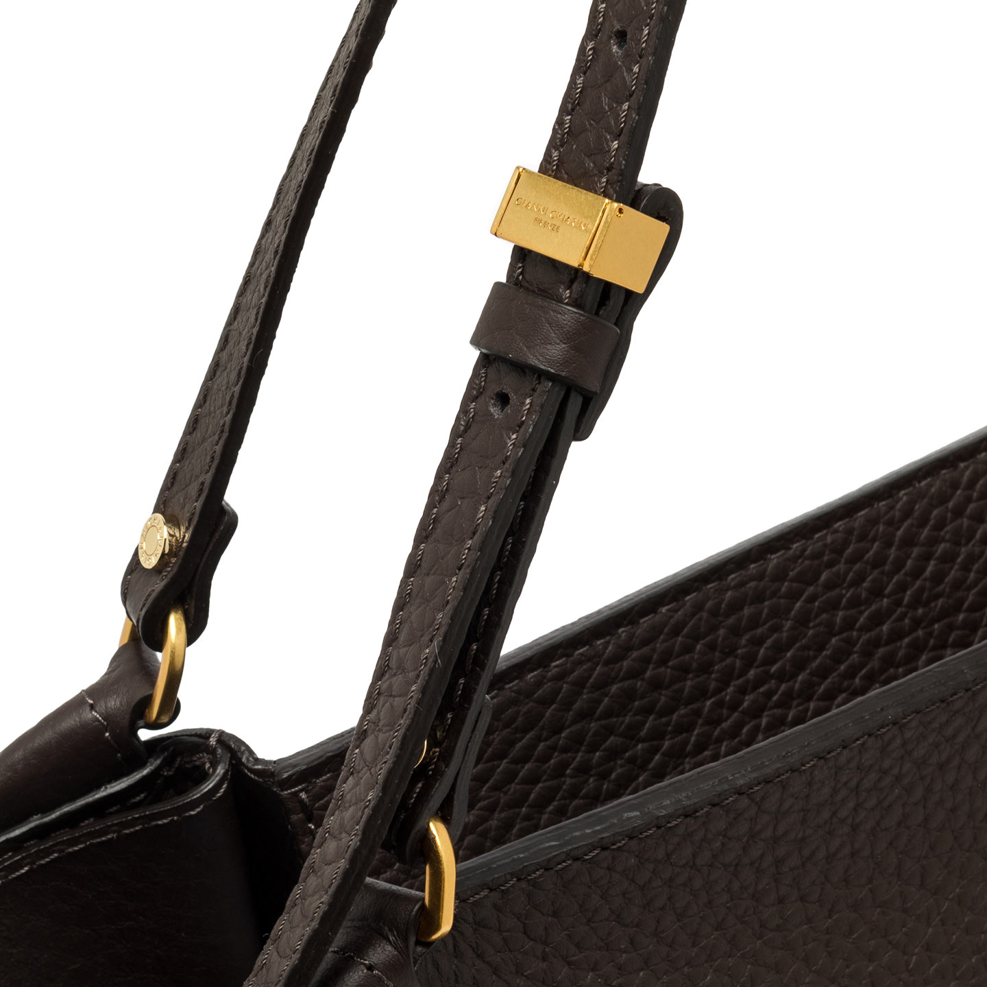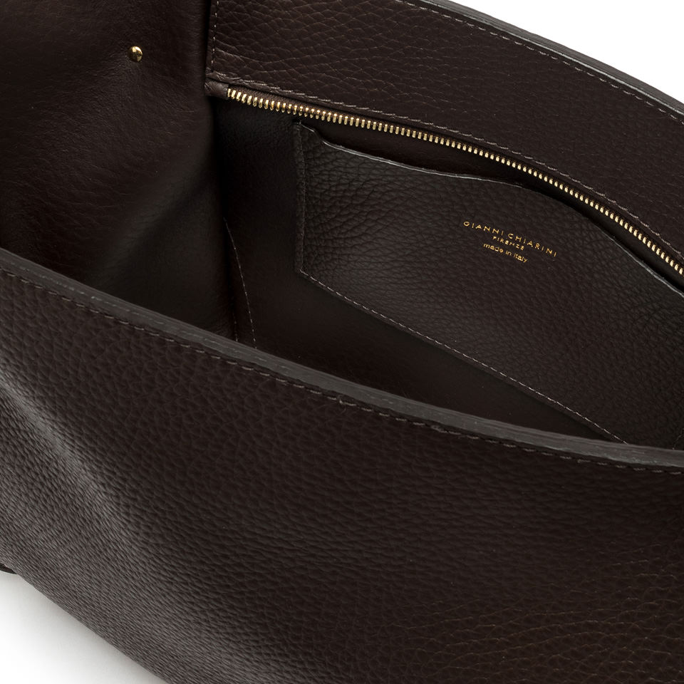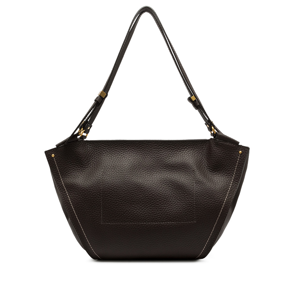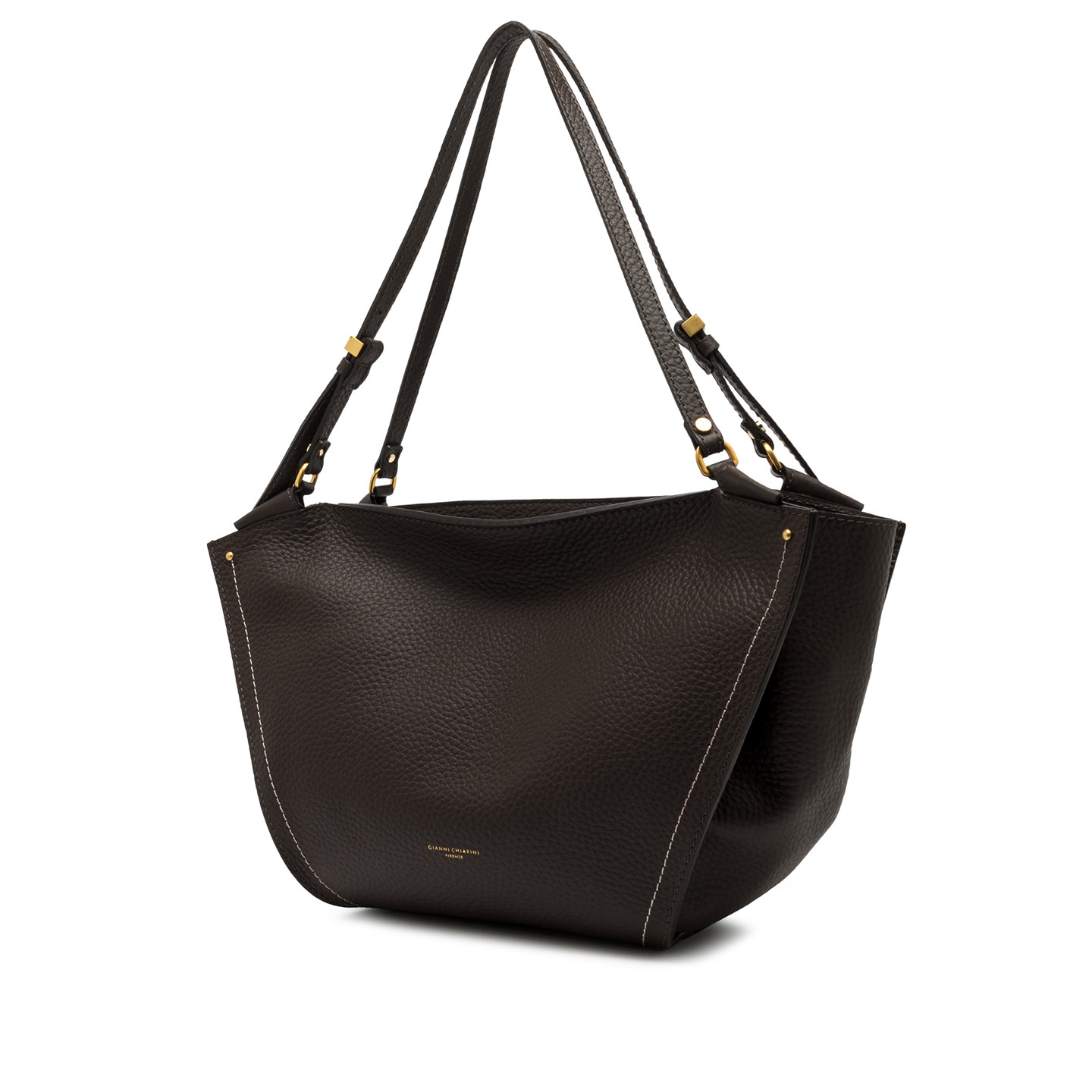 Bloom è la nuova borsa pratica e capiente, caratterizzata da una shape a tulipano. Realizzata in pelle double dalla grana maxi ed impreziosita da una cucitura decorativa a contrasto. L'accessorio è arricchito da elementi in metallo che donano alla borsa un tocco di lucentezza. Dimensioni: 50x27x18 cm.