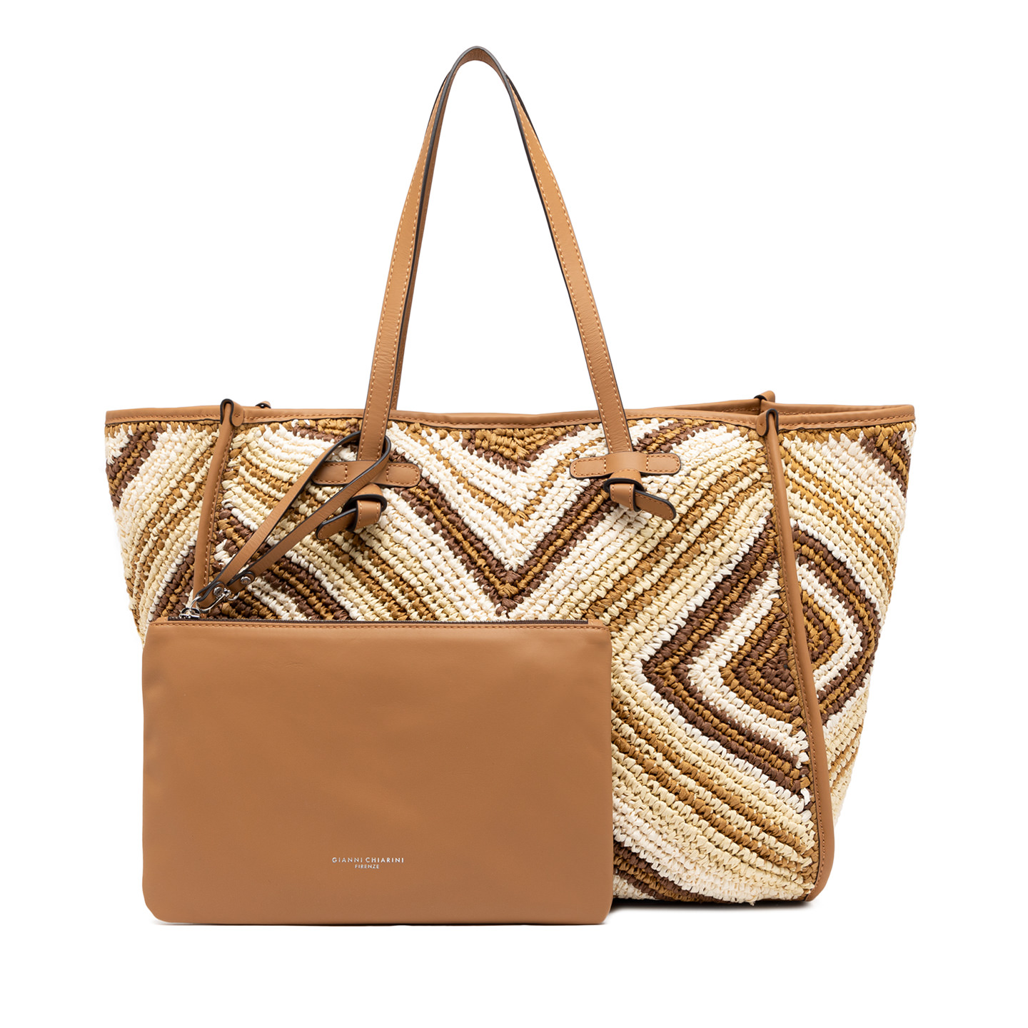 La shopping Marcella by Gianni Chiarini Firenze è realizzata in paglia intrecciata, con profili in pelle a contrasto che ne valorizzano il design essenziale e sofisticato. Perfetta per la stagione estiva, è dotata di manici in pelle, chiusura con magnete e una pochette coordinata in pelle. Un accessorio pratico e distintivo, ideale per accompagnare ogni look quotidiano. Dimensioni: 38x31x16 cm.